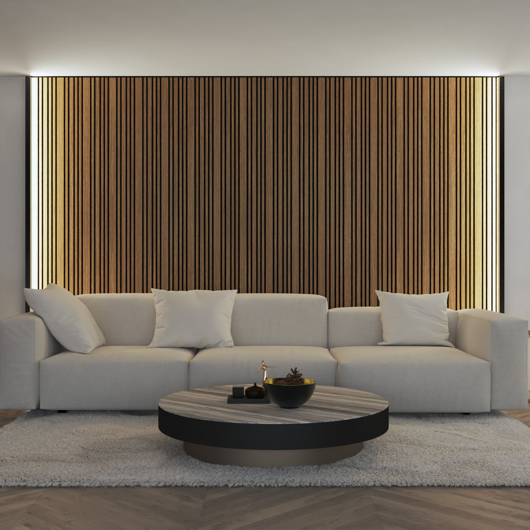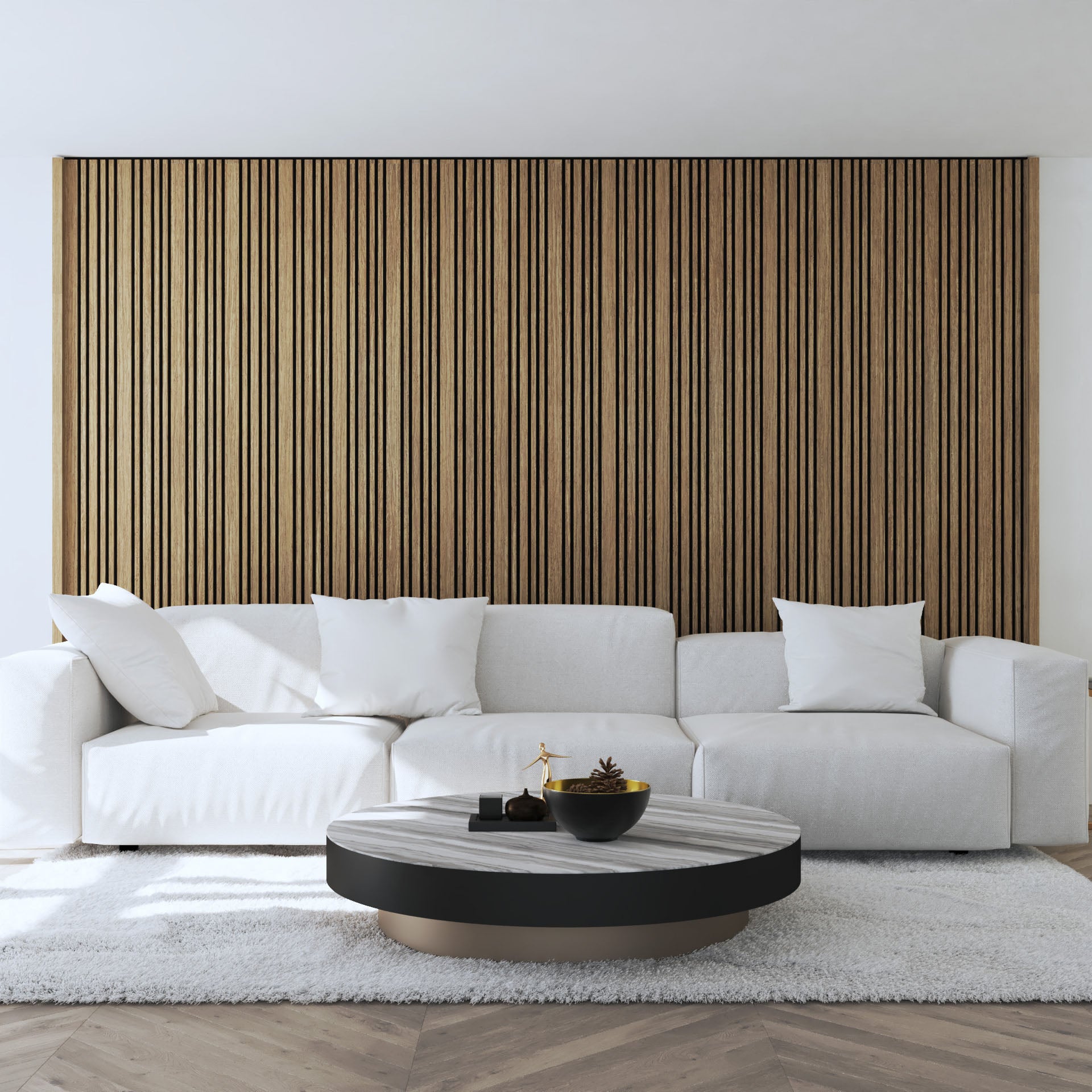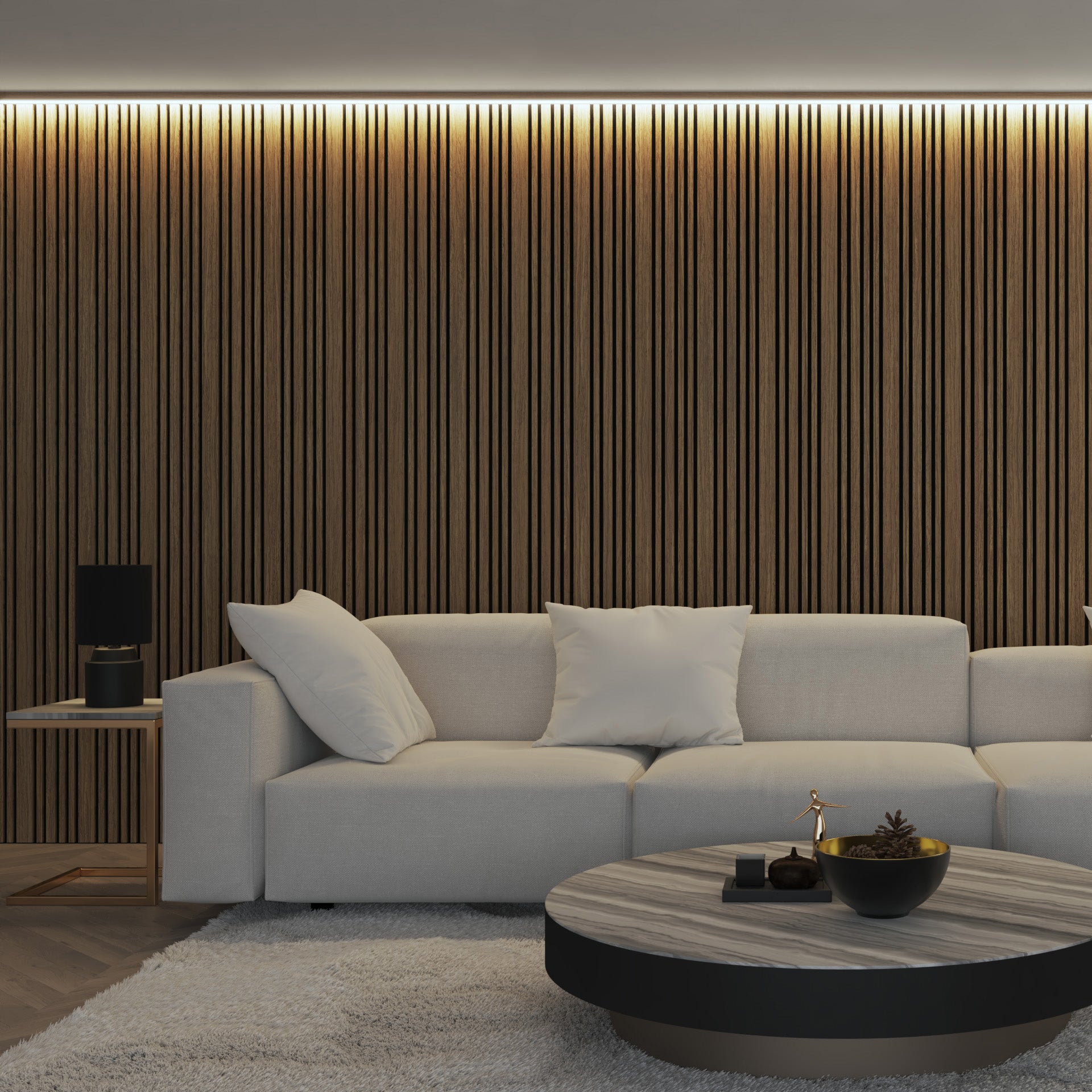 Beyond their aesthetic appeal, our InsuSlat™ panels are engineered to enhance your home's insulation, helping to maintain a comfortable temperature year-round. Additionally, they are designed to reduce sound reverberation, creating a quieter, more serene environment.