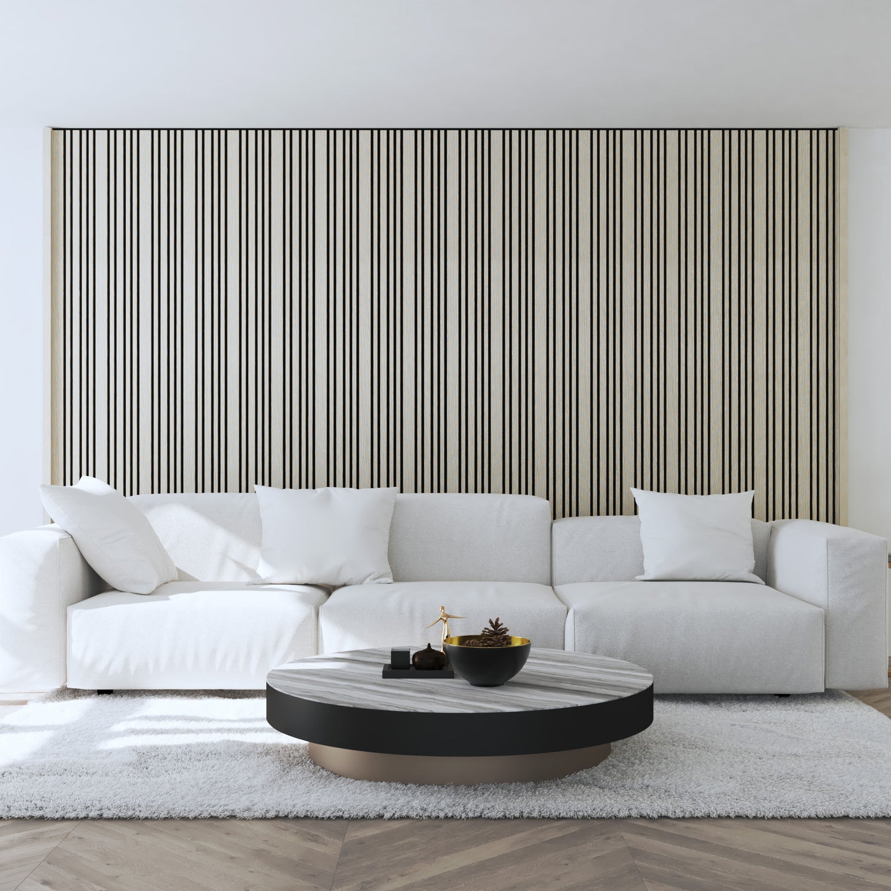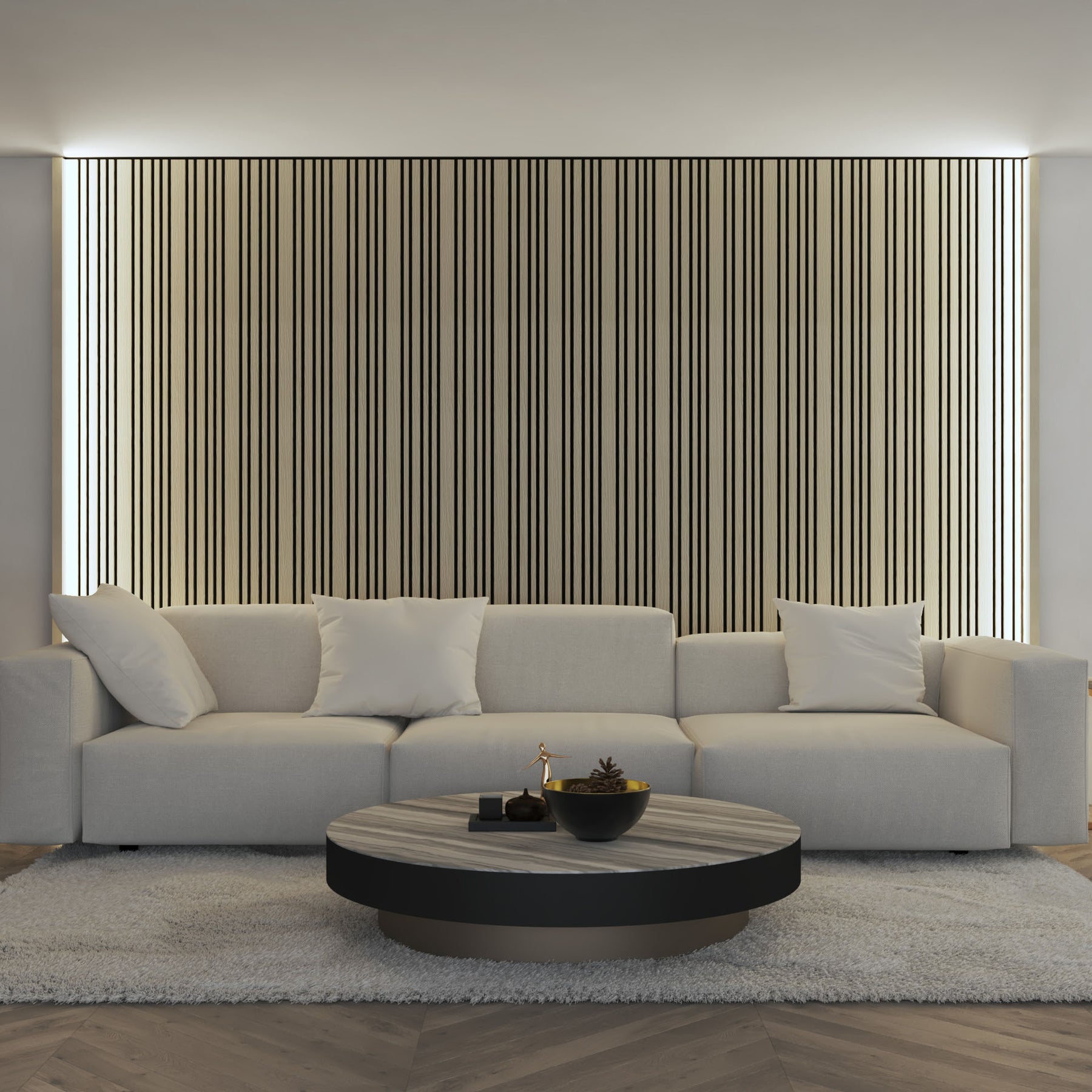 Beyond their aesthetic appeal, our InsuSlat™ panels are engineered to enhance your home's insulation, helping to maintain a comfortable temperature year-round. Additionally, they are designed to reduce sound reverberation, creating a quieter, more serene environment.