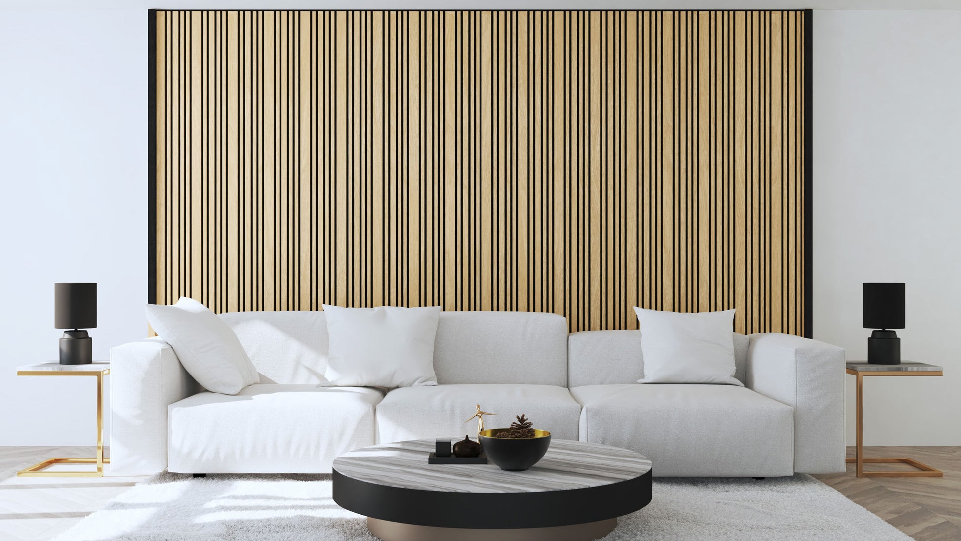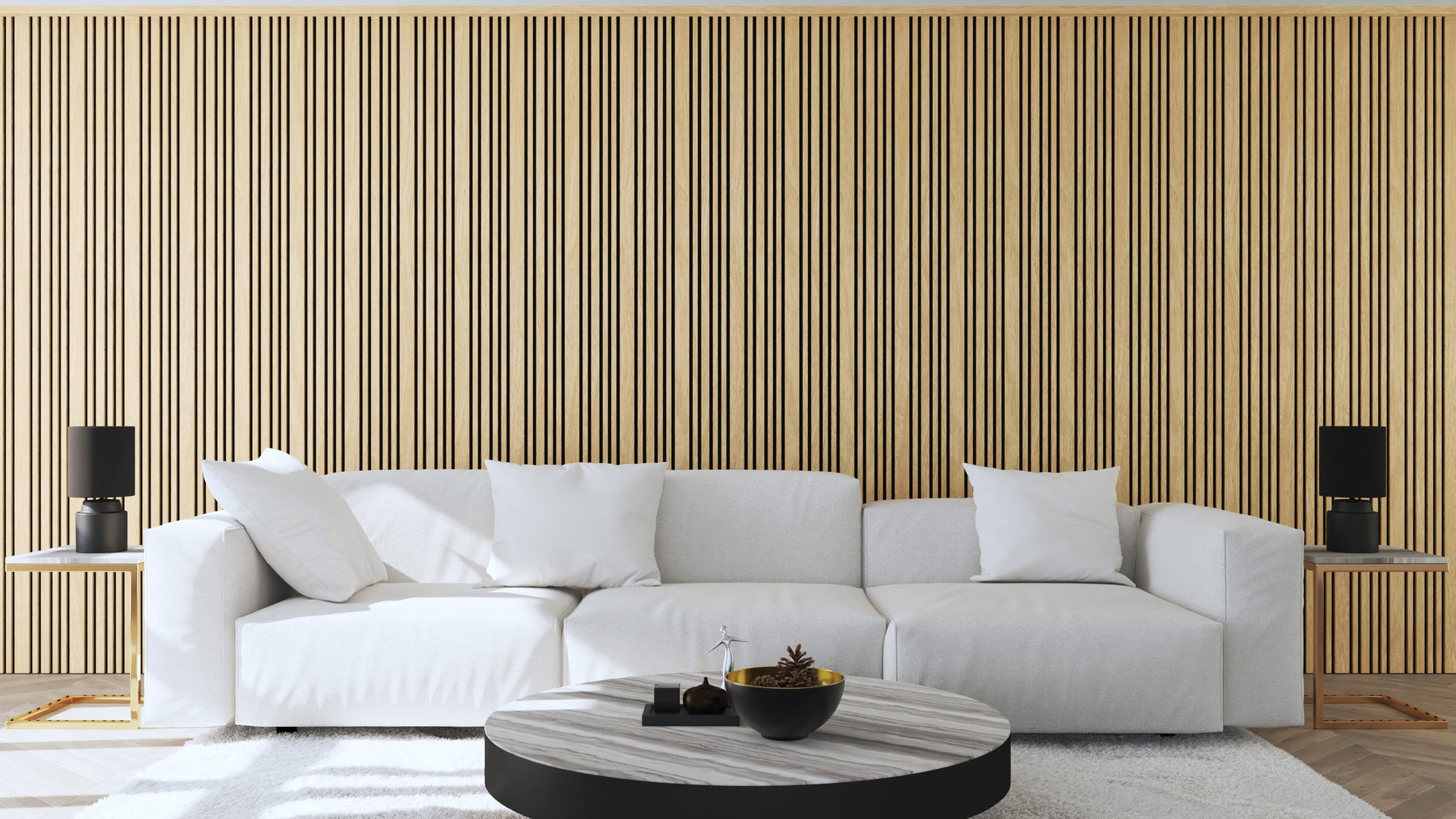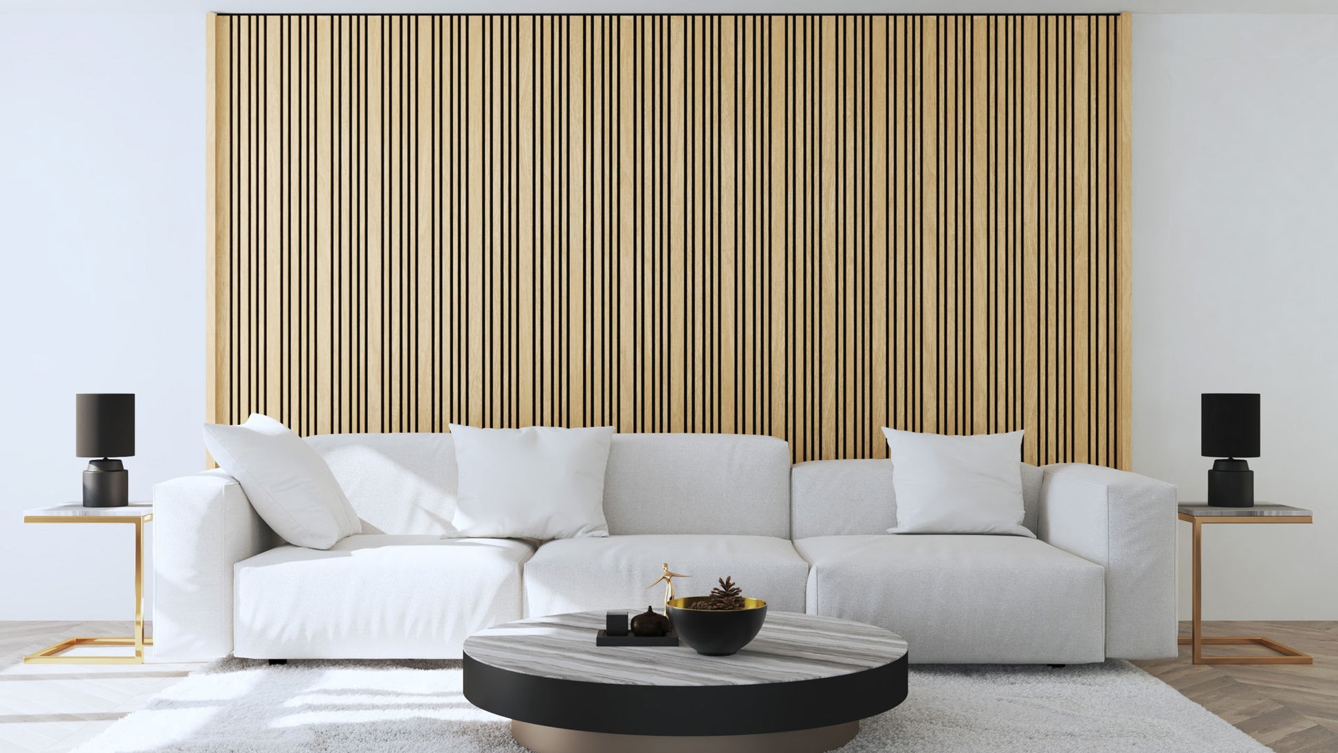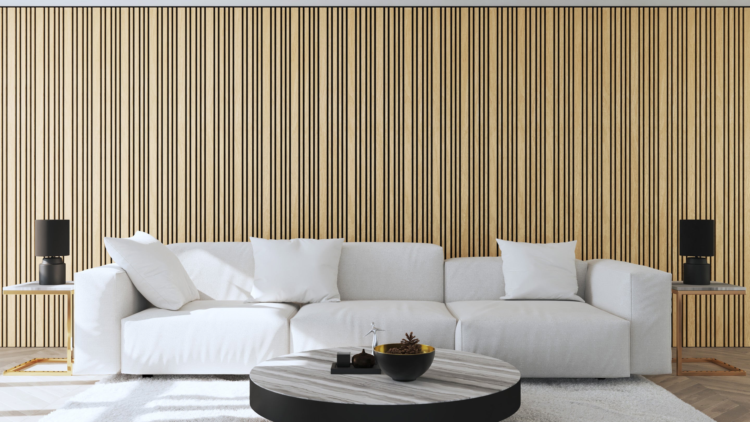 Beyond their aesthetic appeal, our InsuSlat™ panels are engineered to enhance your home's insulation, helping to maintain a comfortable temperature year-round. Additionally, they are designed to reduce sound reverberation, creating a quieter, more serene environment.