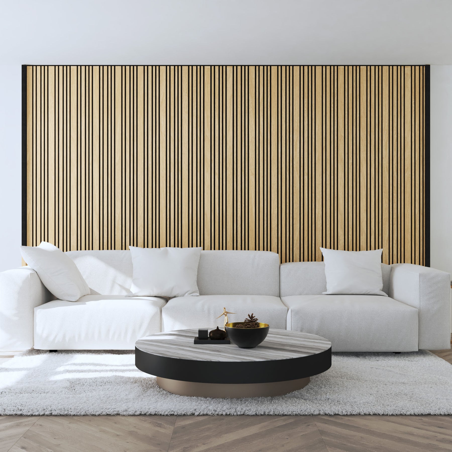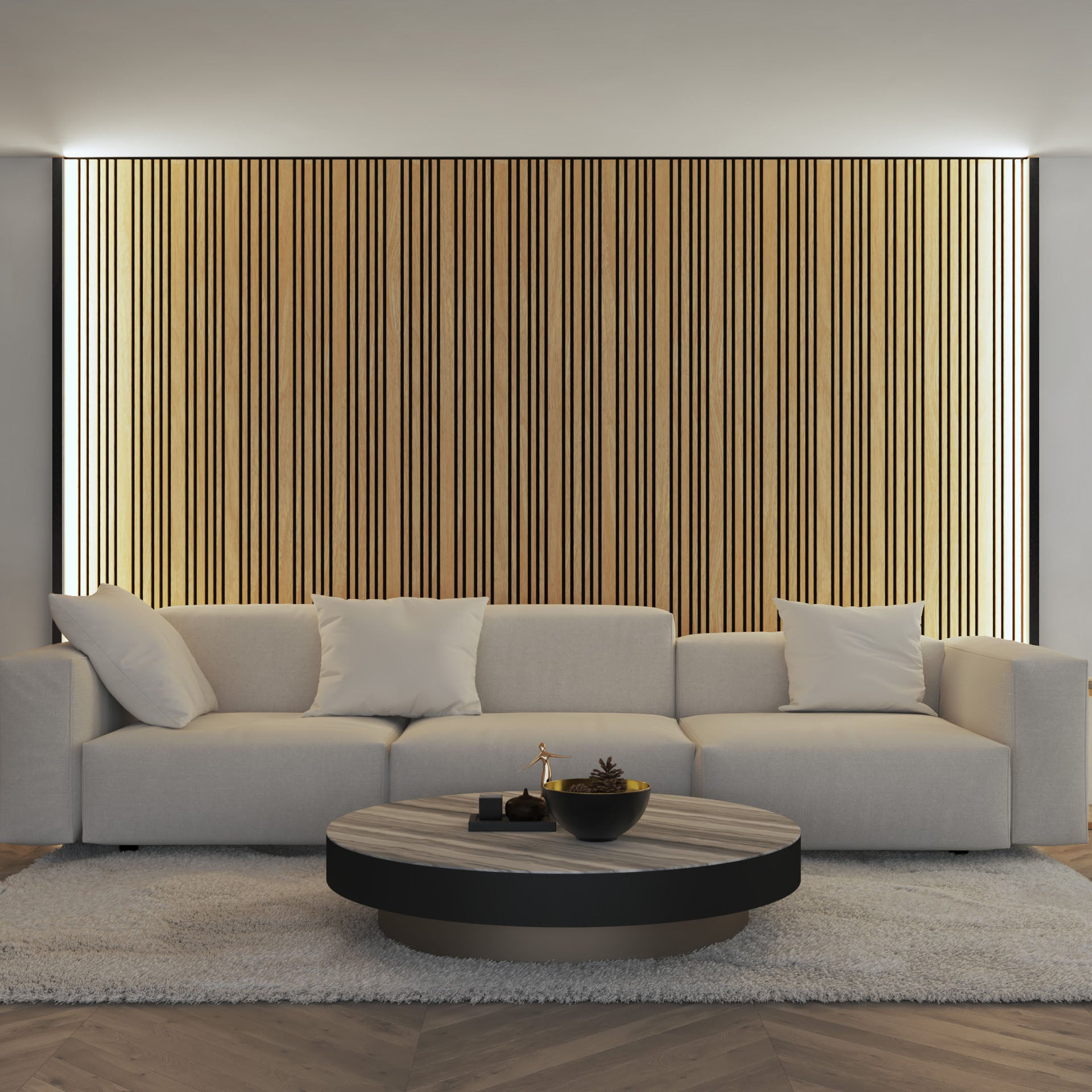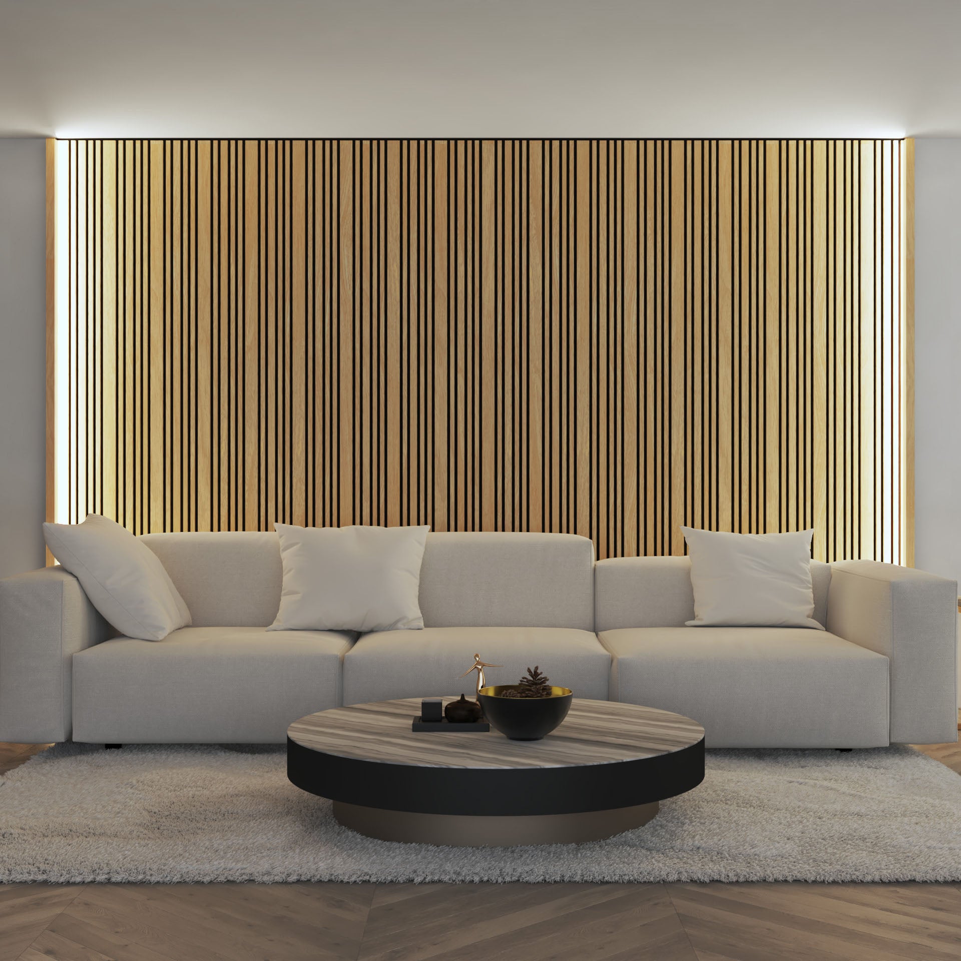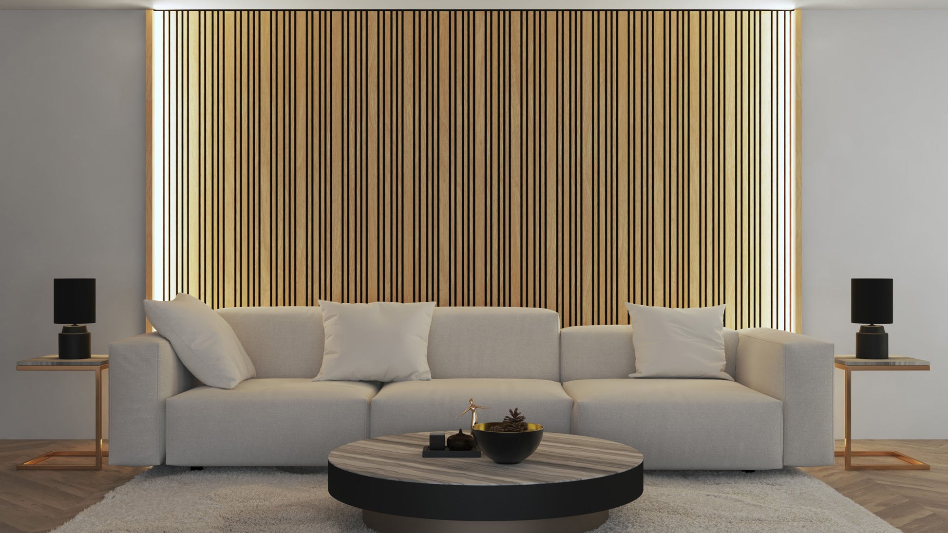 Beyond their aesthetic appeal, our InsuSlat™ panels are engineered to enhance your home's insulation, helping to maintain a comfortable temperature year-round. Additionally, they are designed to reduce sound reverberation, creating a quieter, more serene environment.