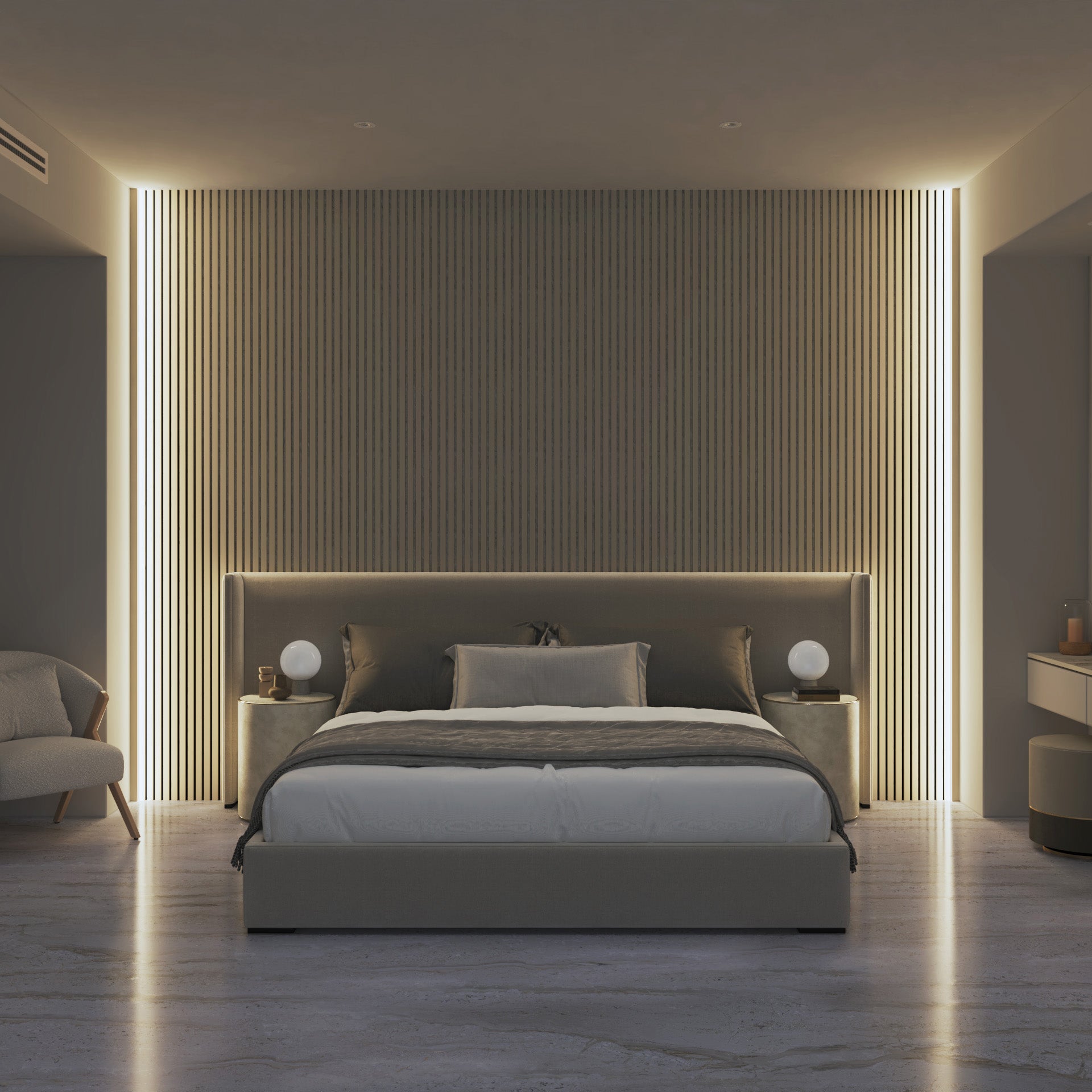 For those seeking an extra touch of luxury and ambiance, consider our optional, top trim LED batten feature. These LED battens infuse warmth and create a captivating atmosphere in any room, adding that extra layer of sophistication and comfort.