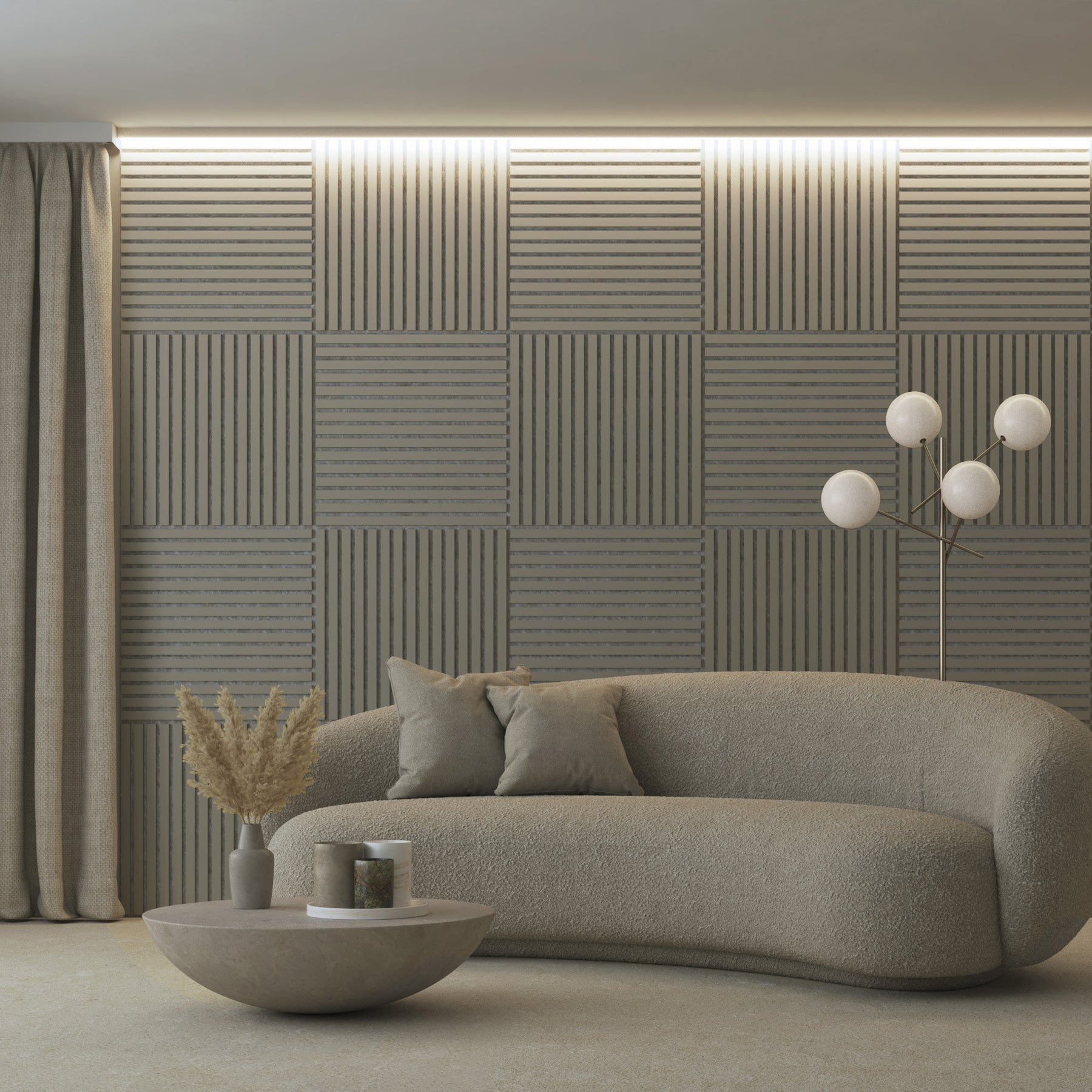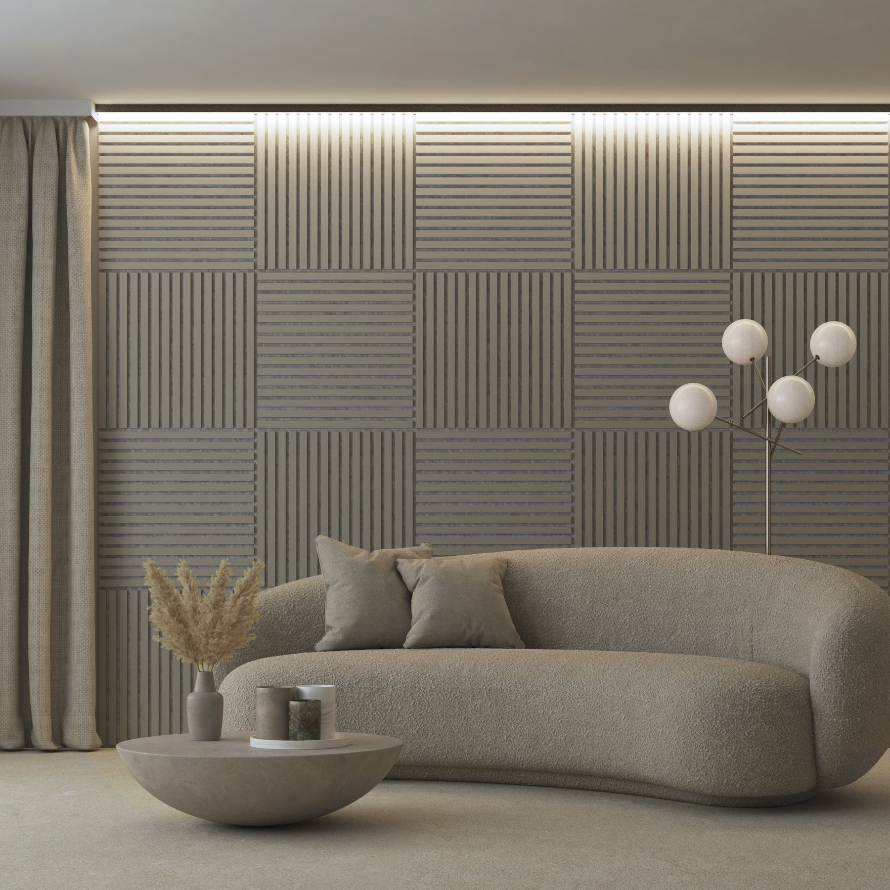 Beyond their aesthetic appeal, our InsuSlat™ panels are engineered to enhance your home's insulation, helping to maintain a comfortable temperature year-round. Additionally, they are designed to reduce sound reverberation, creating a quieter, more serene environment.