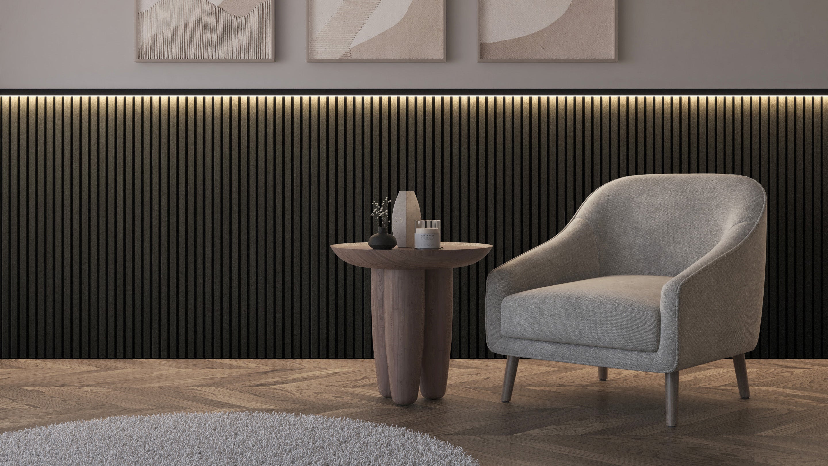 Beyond their aesthetic appeal, our InsuSlat™ panels are engineered to enhance your home's insulation, helping to maintain a comfortable temperature year-round. Additionally, they are designed to reduce sound reverberation, creating a quieter, more serene environment.
