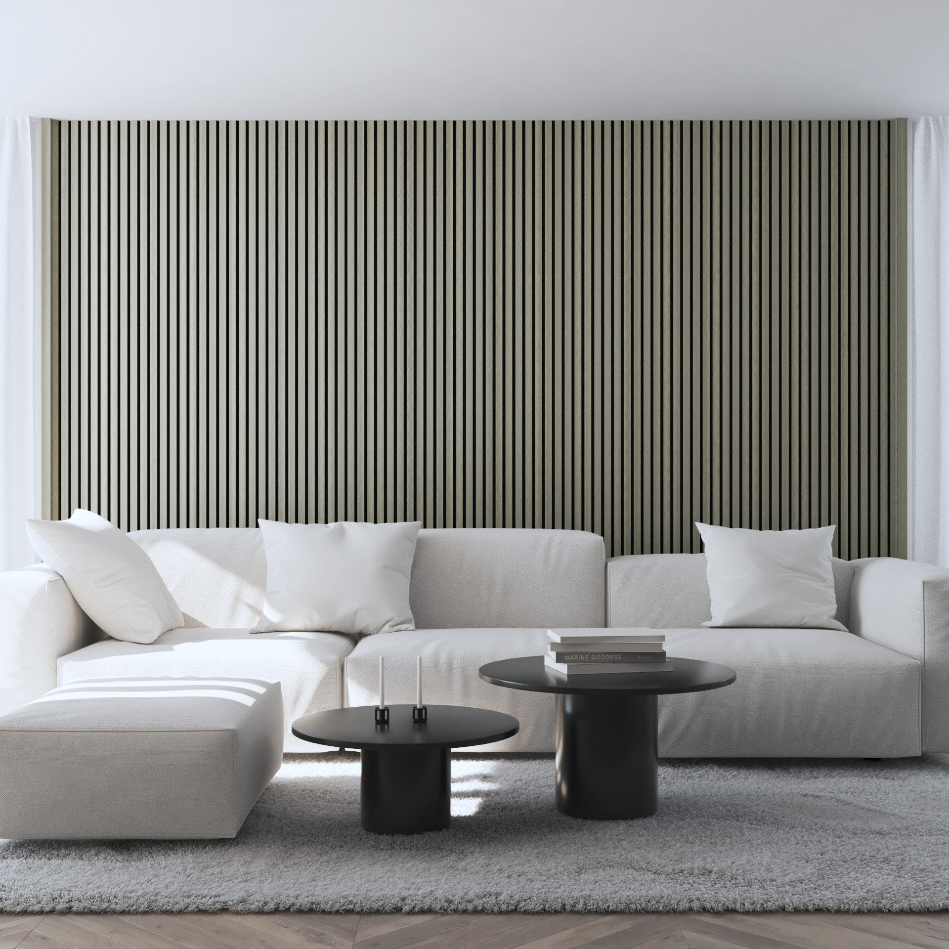 Beyond their aesthetic appeal, our InsuSlat™ panels are engineered to enhance your home's insulation, helping to maintain a comfortable temperature year-round. Additionally, they are designed to reduce sound reverberation, creating a quieter, more serene environment.