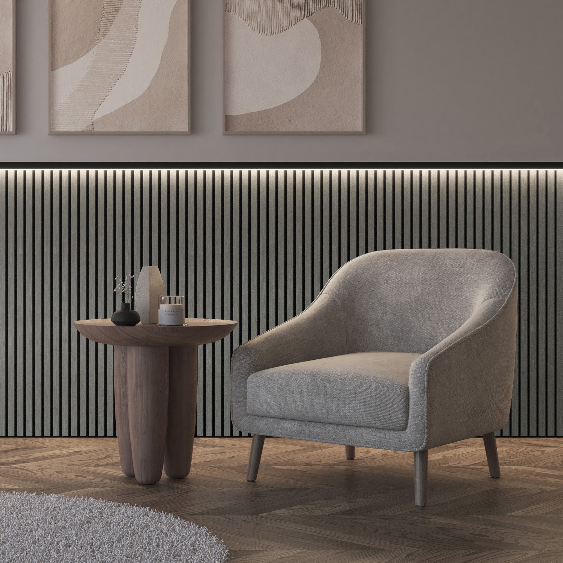 Beyond their aesthetic appeal, our InsuSlat™ panels are engineered to enhance your home's insulation, helping to maintain a comfortable temperature year-round. Additionally, they are designed to reduce sound reverberation, creating a quieter, more serene environment.