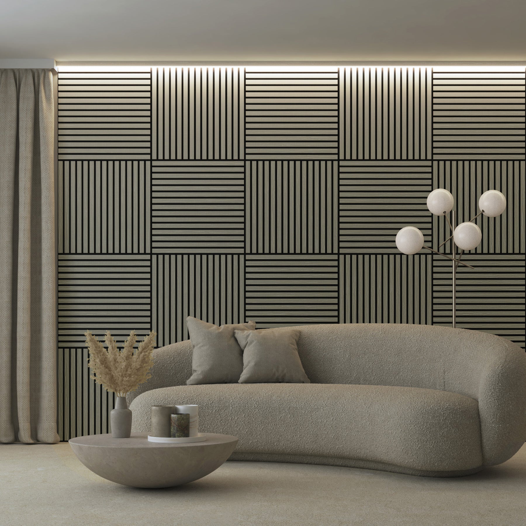 Beyond their aesthetic appeal, our InsuSlat™ panels are engineered to enhance your home's insulation, helping to maintain a comfortable temperature year-round. Additionally, they are designed to reduce sound reverberation, creating a quieter, more serene environment.