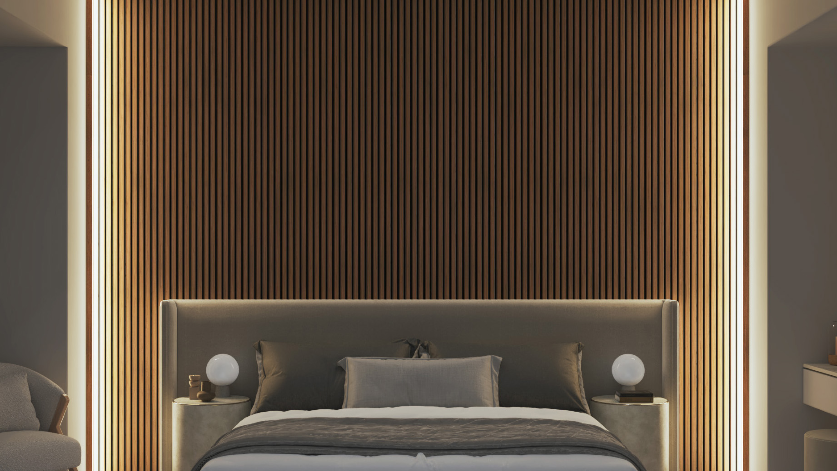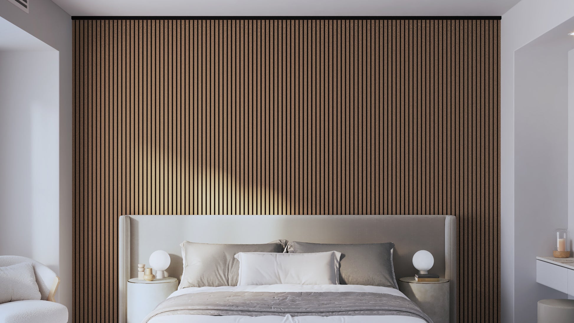 Beyond their aesthetic appeal, our InsuSlat™ panels are engineered to enhance your home's insulation, helping to maintain a comfortable temperature year-round. Additionally, they are designed to reduce sound reverberation, creating a quieter, more serene environment.