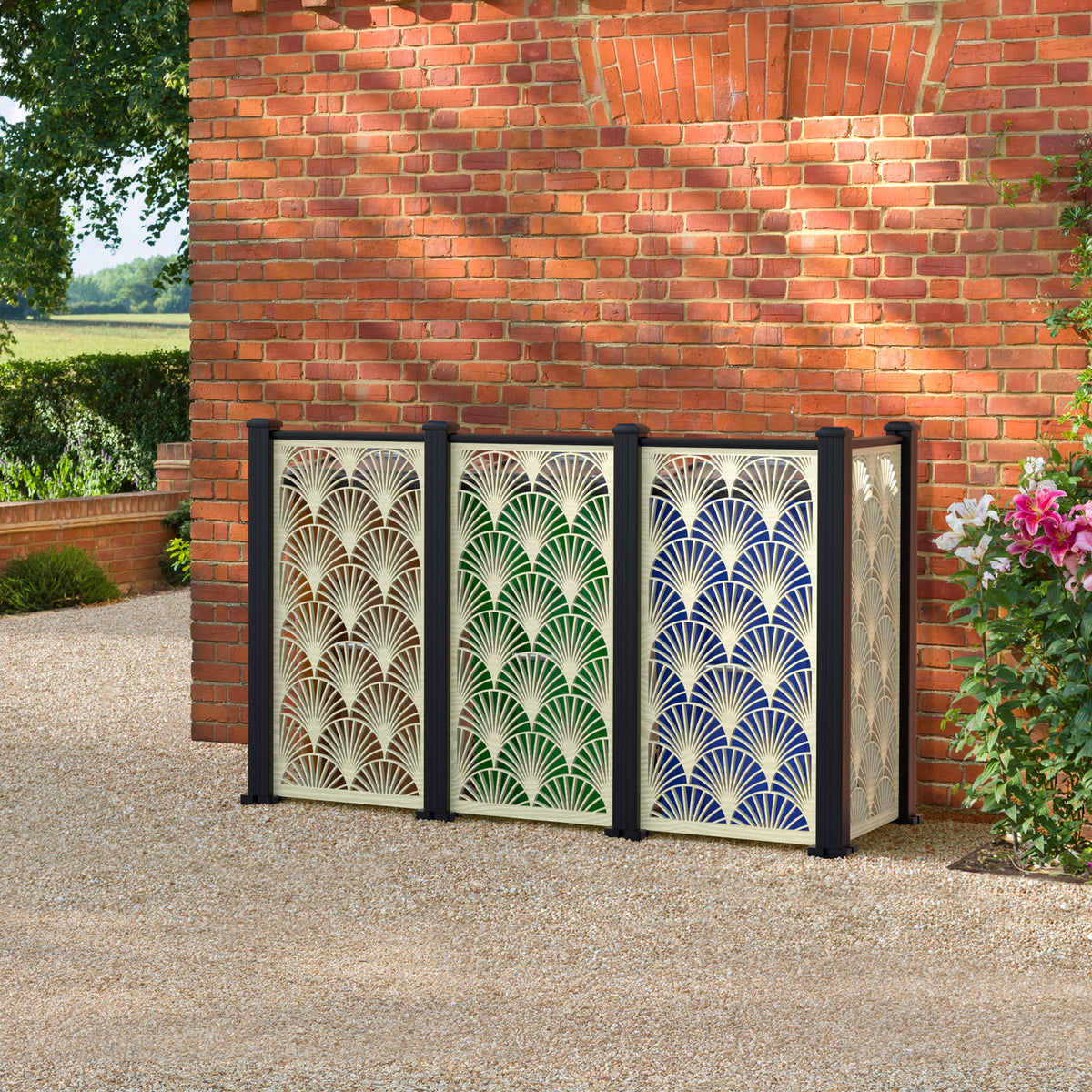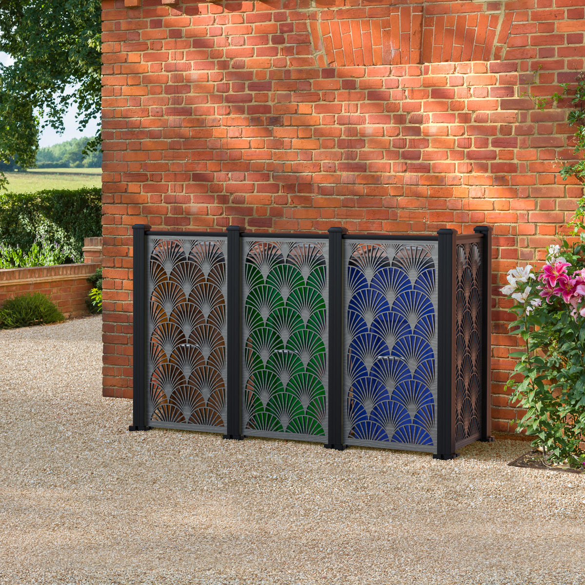 Our bin screens are designed to blend in seamlessly with your outdoor decor, effectively hiding the bins from view. We offer a variety of elegant styles, in 3 different sizes and 4 chic colours, making our premium bin screening system the ultimate choice for those who desire a luxurious and sophisticated outdoor experience.