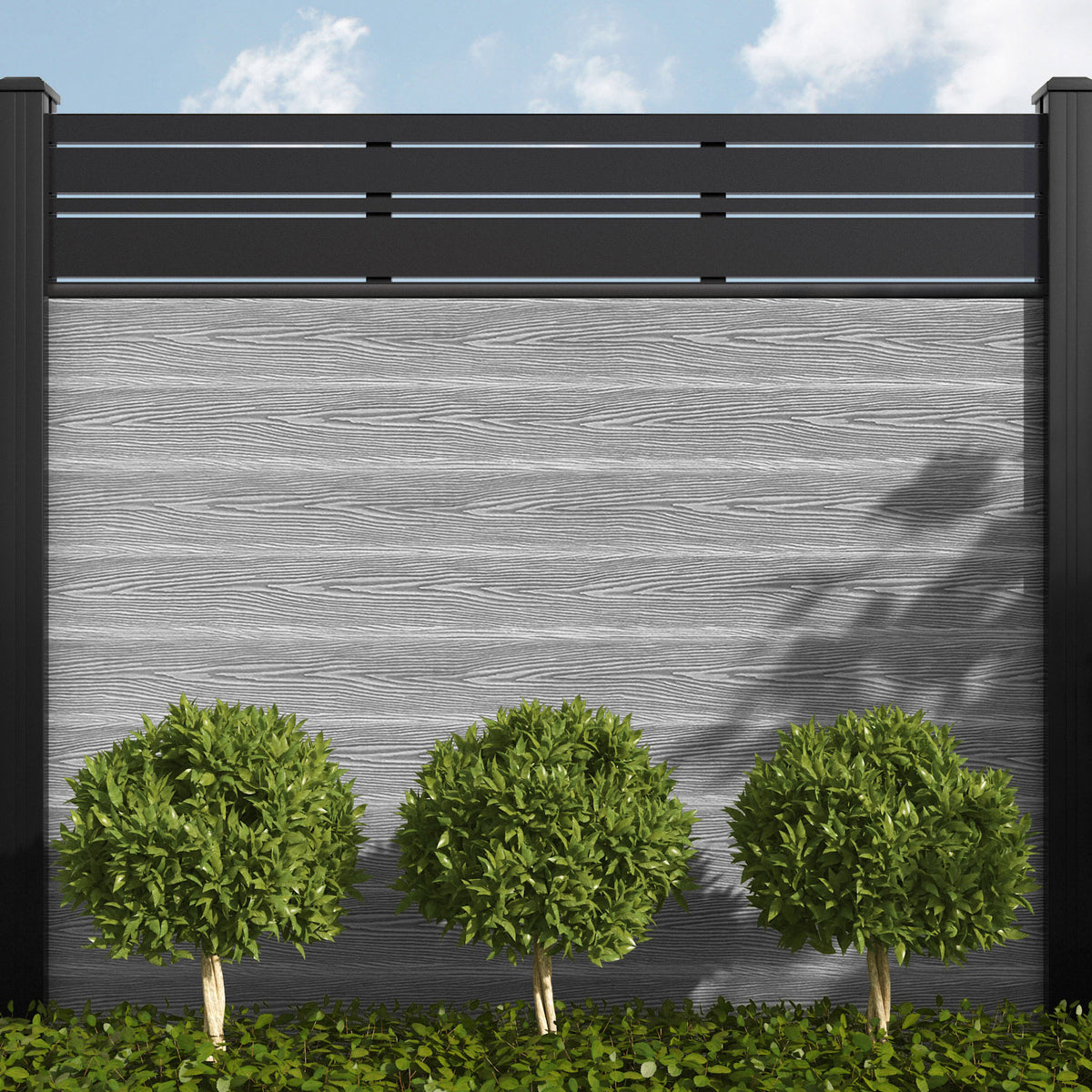 Our slatted screens feature a beautiful woodgrain finish to their display side. Use multiple slatted screens to achieve a striking, contemporary look, or combine with our fence slats for a customised design. You can pair our slatted fence screens with our powder-coated aluminium fence posts, or fit them to your existing concrete or wooden posts using our fence channels.