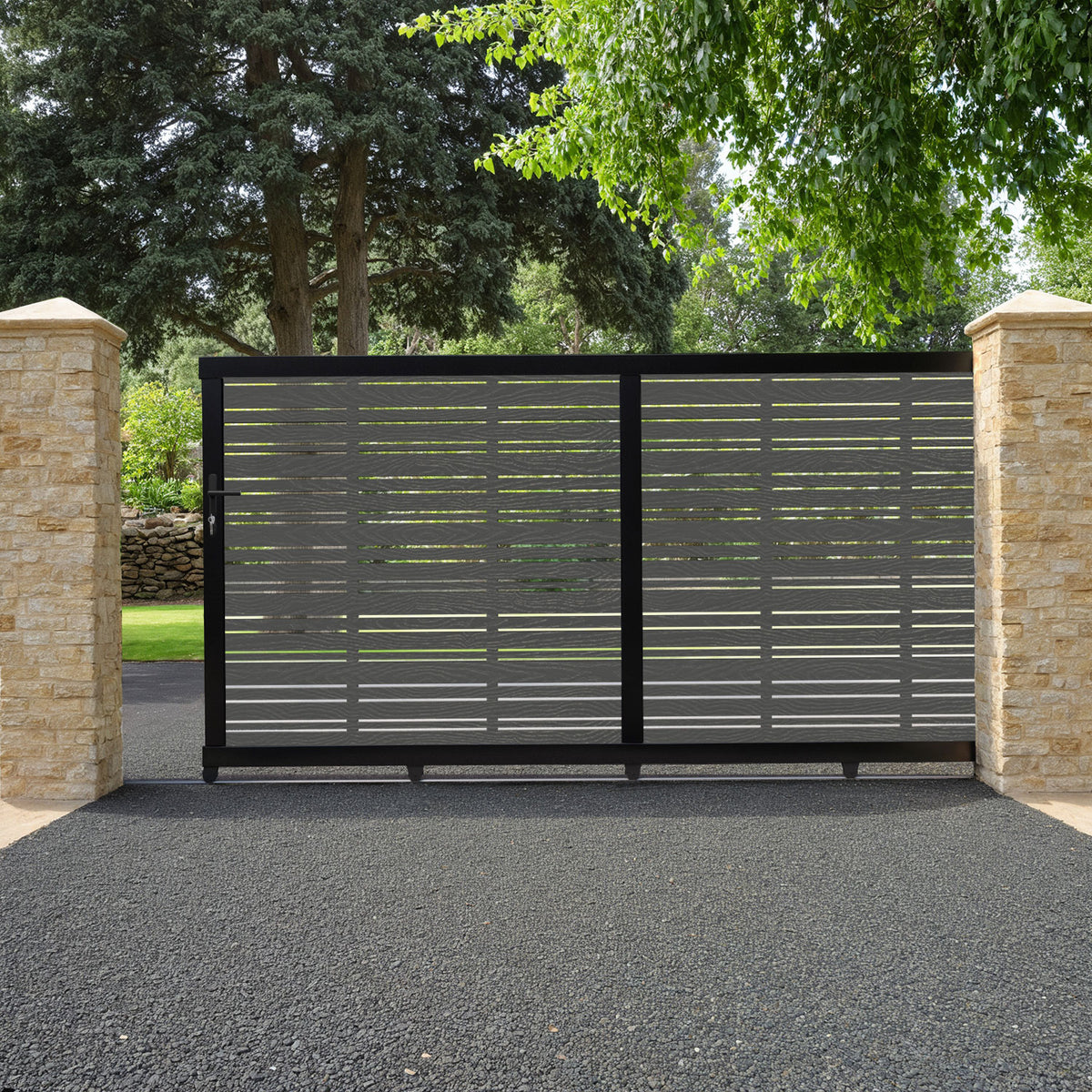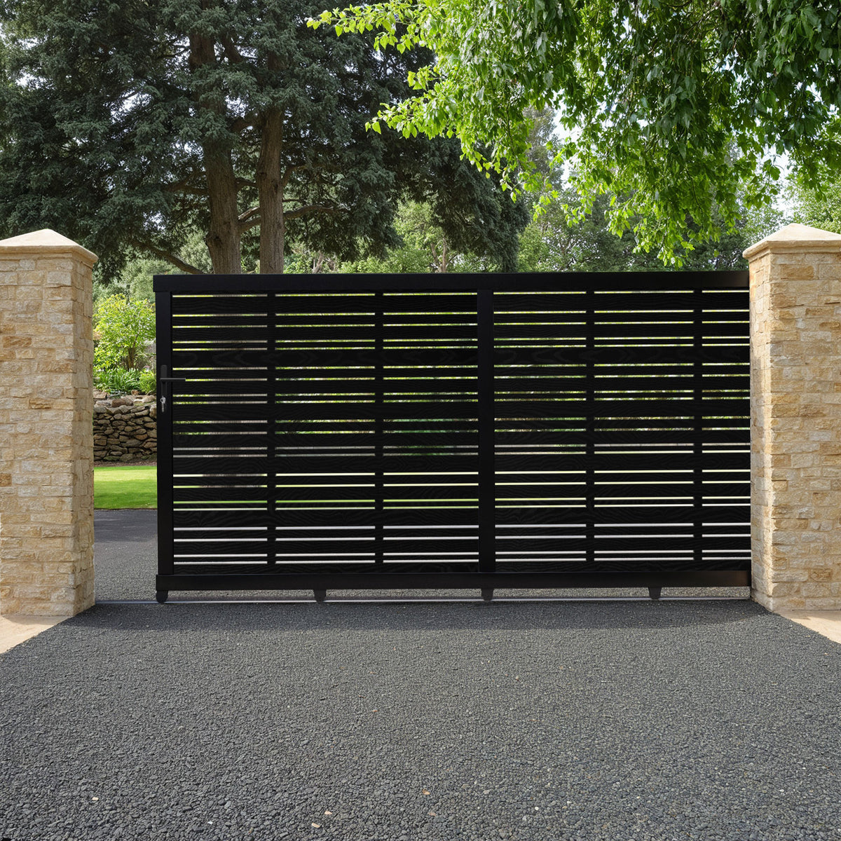 Pair your gate with our eco-friendly composite or aluminium slats for a seamless match with our fencing collections, ensuring a stylish and cohesive look.