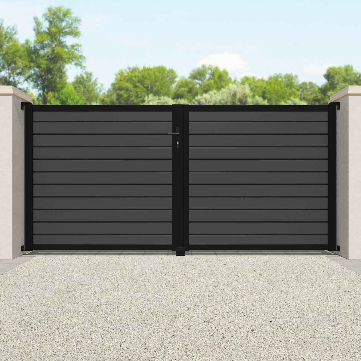 Pair your gate with our eco-friendly composite or aluminium slats for a seamless match with our fencing collections, ensuring a stylish and cohesive look.