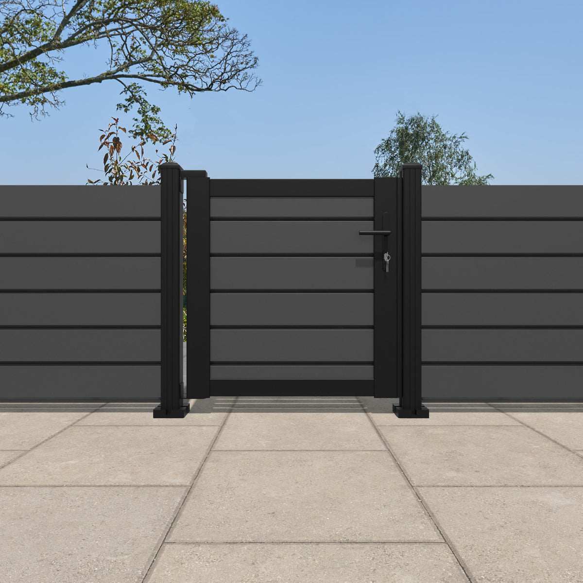Pair your gate with our eco-friendly composite or aluminium slats for a seamless match to our fencing collections, ensuring a stylish and cohesive look.