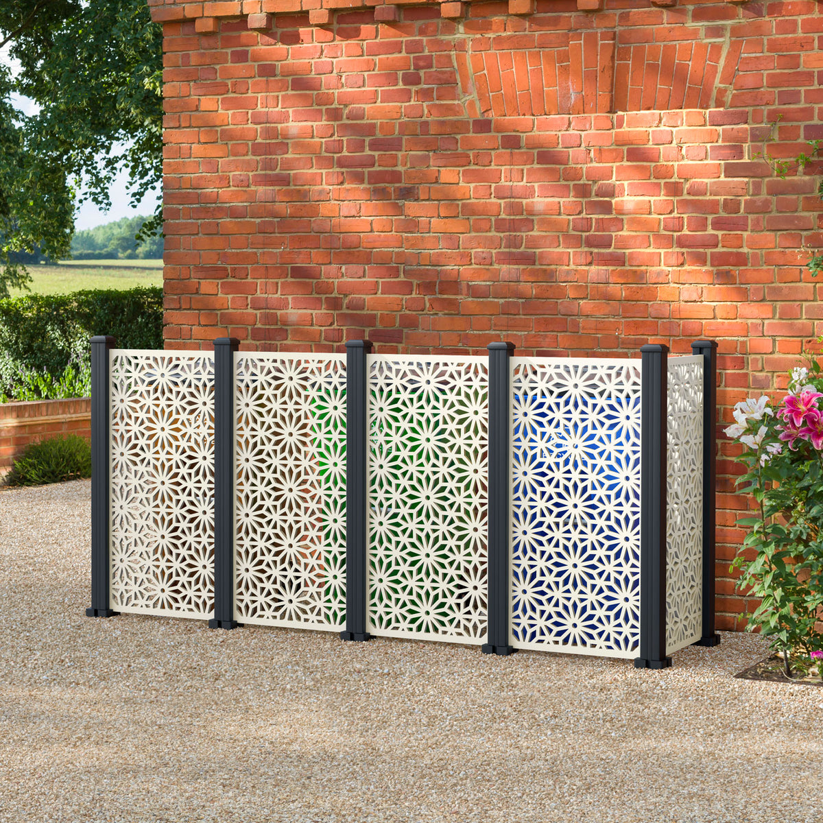 Our bin screens are designed to blend in seamlessly with your outdoor decor, effectively hiding the bins from view. We offer a variety of elegant styles, in 3 different sizes and 4 chic colours, making our premium bin screening system the ultimate choice for those who desire a luxurious and sophisticated outdoor experience.