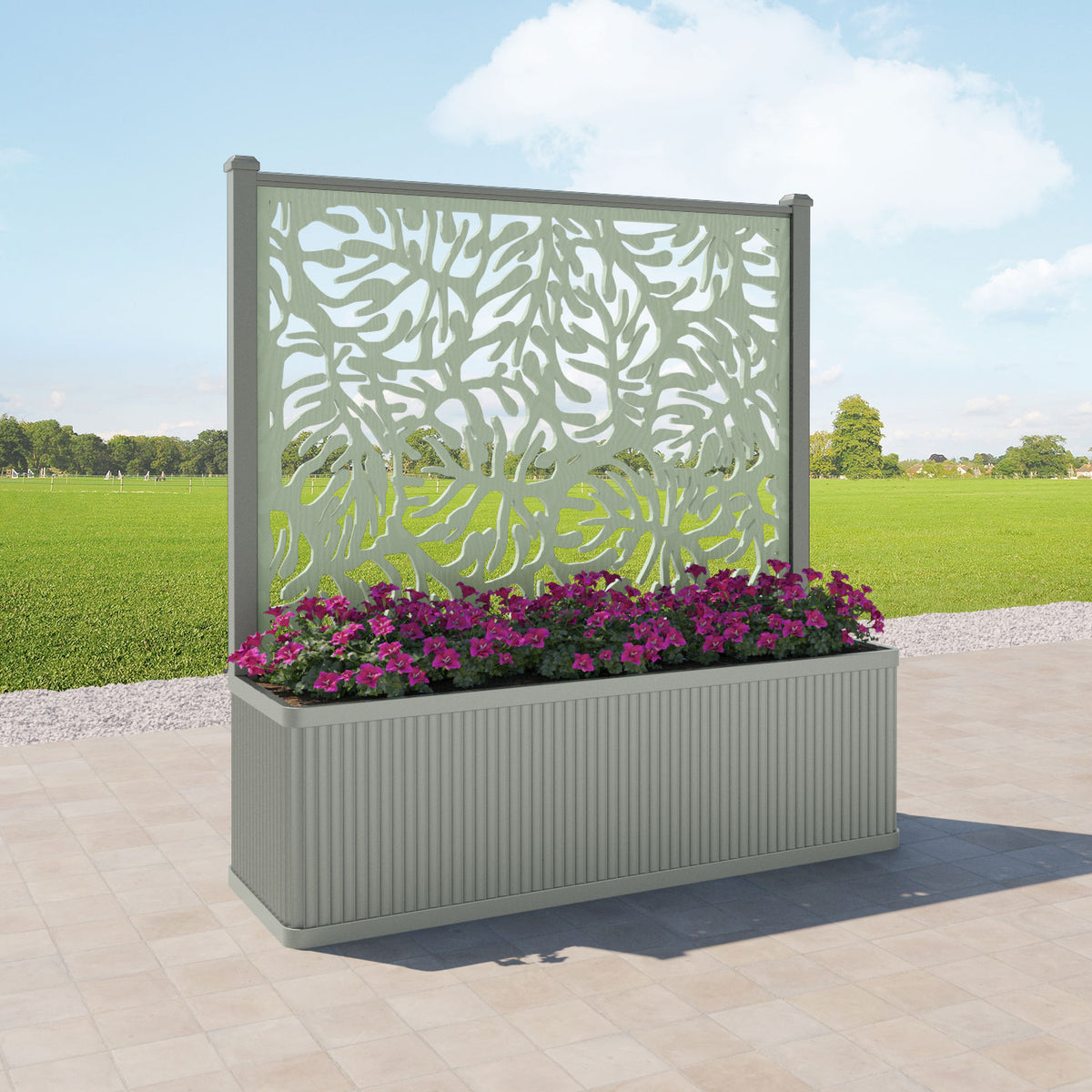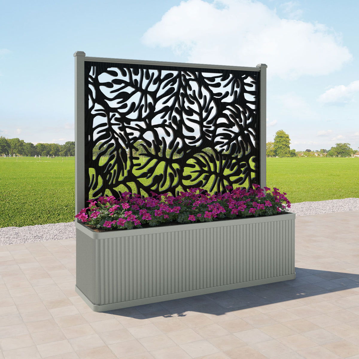 The planters are available in 6 different sizes and can be paired with any of our decorative screens that are available in 5 different colour options. The screens can be fixed at the back or in the centre of the planter. The centre option enables you to plant on both sides of the screen. They can also be ordered with a wheeled base for convenience, with lockable wheels for stability.