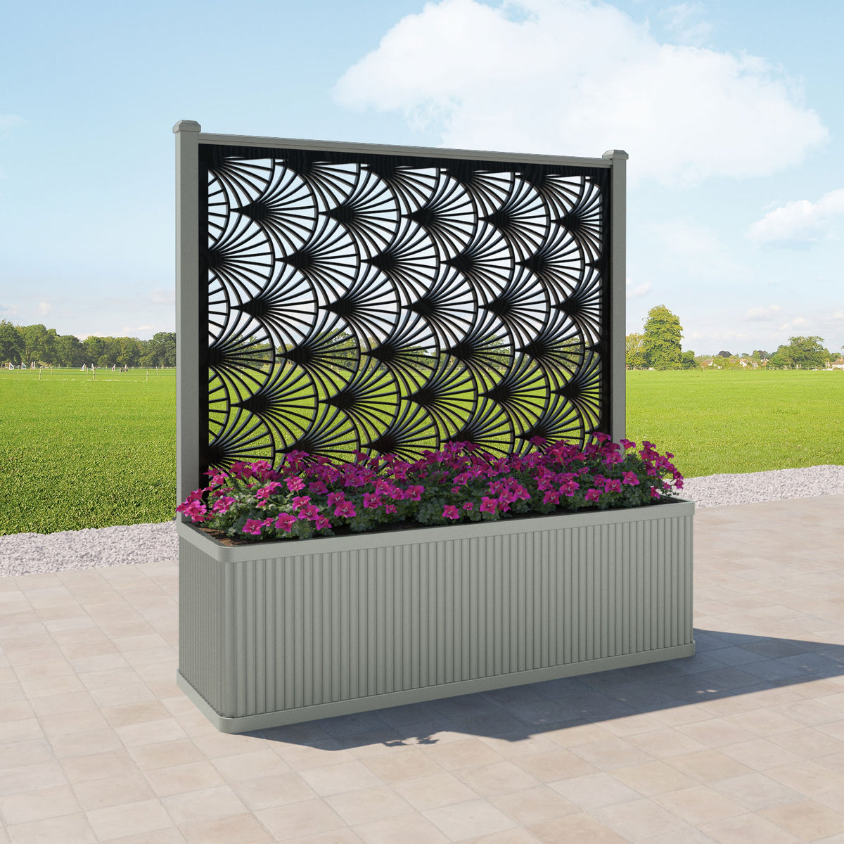 The planters are available in 6 different sizes and can be paired with any of our decorative screens that are available in 5 different colour options. The screens can be fixed at the back or in the centre of the planter. The centre option enables you to plant on both sides of the screen. They can also be ordered with a wheeled base for convenience, with lockable wheels for stability.