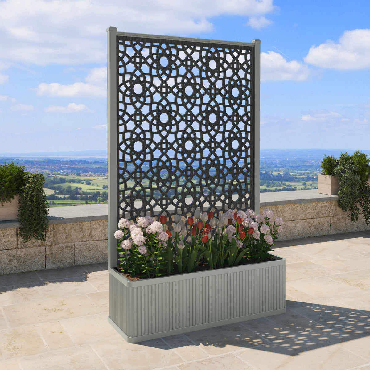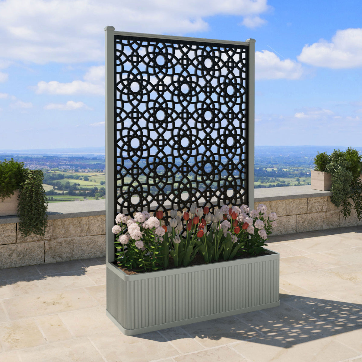 The planters are available in 6 different sizes and can be paired with any of our decorative screens that are available in 5 different colour options. The screens can be fixed at the back or in the centre of the planter. The centre option enables you to plant on both sides of the screen. They can also be ordered with a wheeled base for convenience, with lockable wheels for stability.