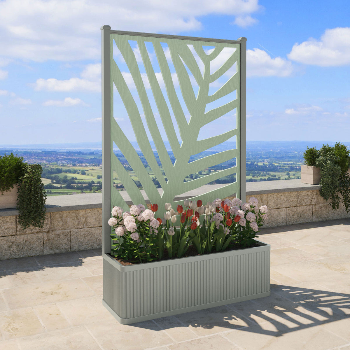 The planters are available in 6 different sizes and can be paired with any of our decorative screens that are available in 5 different colour options. The screens can be fixed at the back or in the centre of the planter. The centre option enables you to plant on both sides of the screen. They can also be ordered with a wheeled base for convenience, with lockable wheels for stability.