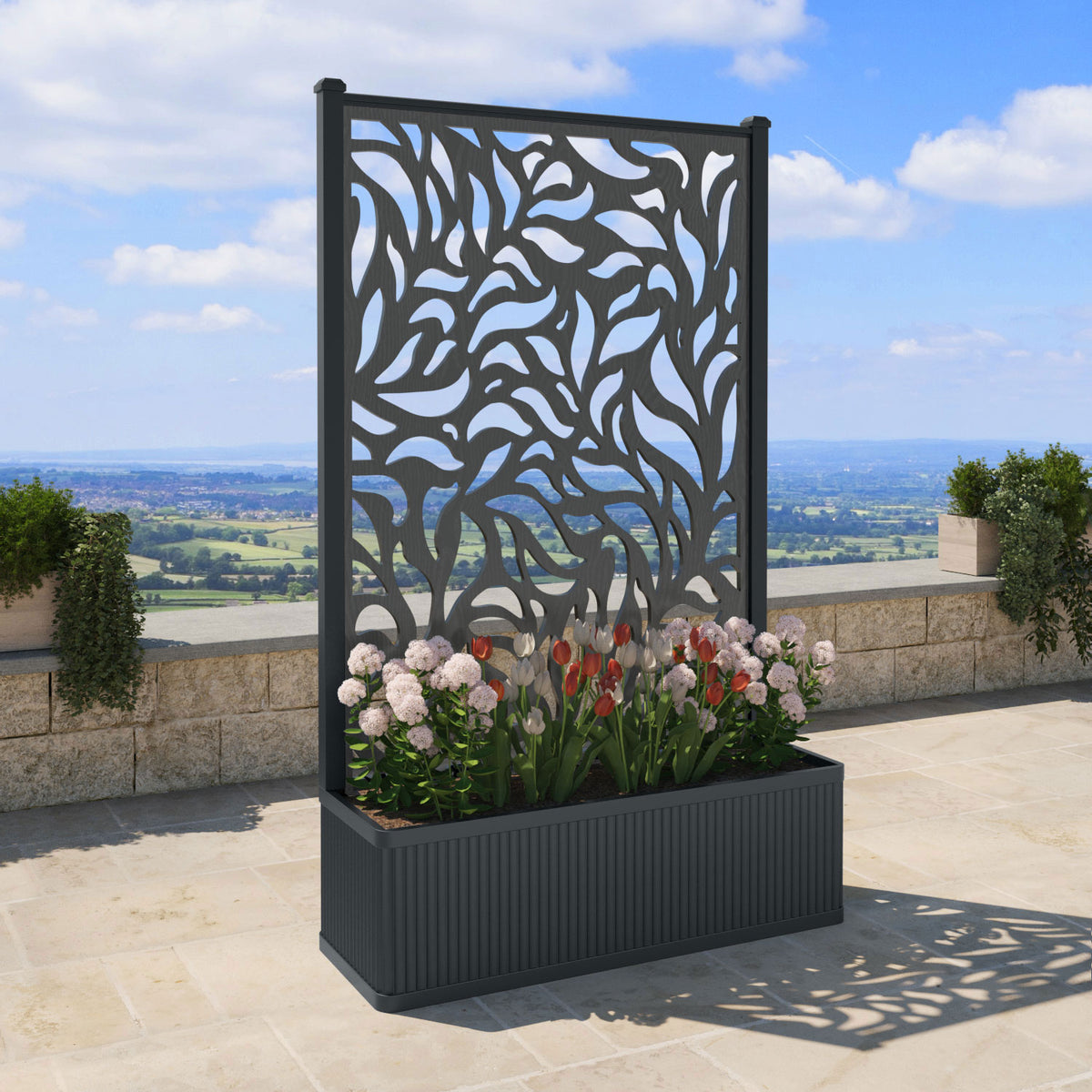 Our all-weather, durable planters are designed to serve both practical and aesthetic purposes by providing an elegant solution to screen certain areas and adding a touch of beauty and greenery to any space.
