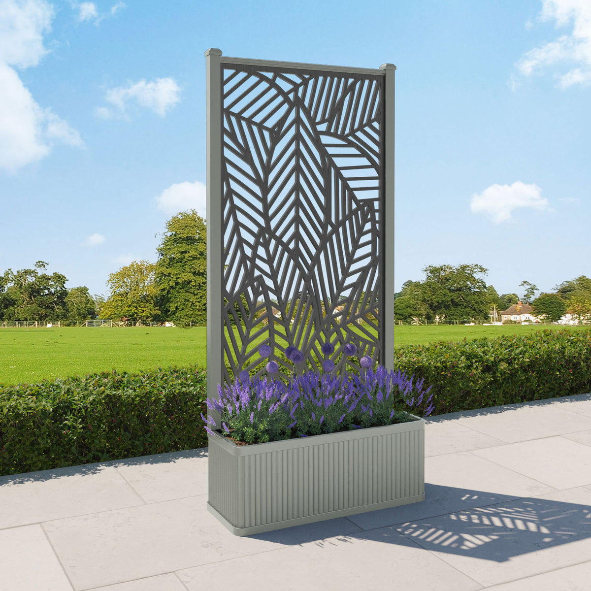 The planters are available in 6 different sizes and can be paired with any of our decorative screens that are available in 5 different colour options. The screens can be fixed at the back or in the centre of the planter. The centre option enables you to plant on both sides of the screen. They can also be ordered with a wheeled base for convenience, with lockable wheels for stability.