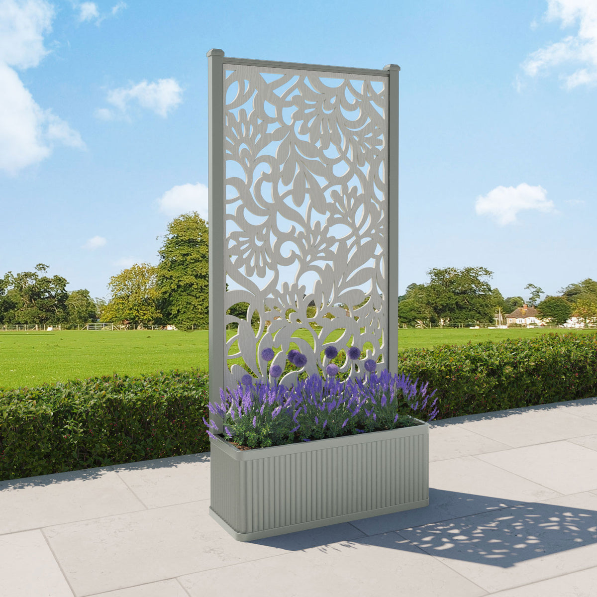 The planters are available in 6 different sizes and can be paired with any of our decorative screens that are available in 5 different colour options. The screens can be fixed at the back or in the centre of the planter. The centre option enables you to plant on both sides of the screen. They can also be ordered with a wheeled base for convenience, with lockable wheels for stability.