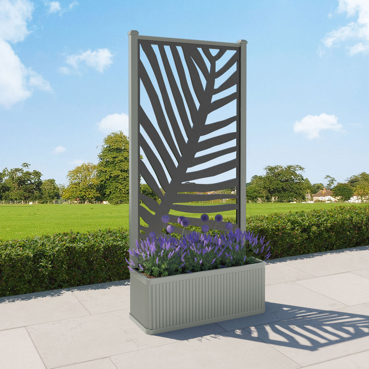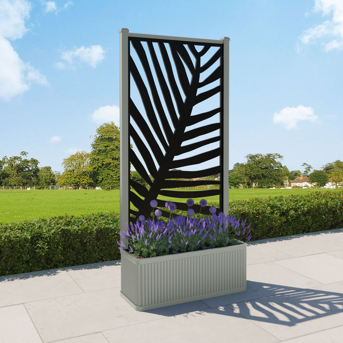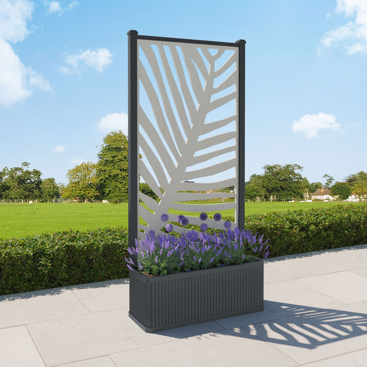 The planters are available in 6 different sizes and can be paired with any of our decorative screens that are available in 5 different colour options. The screens can be fixed at the back or in the centre of the planter. The centre option enables you to plant on both sides of the screen. They can also be ordered with a wheeled base for convenience, with lockable wheels for stability.