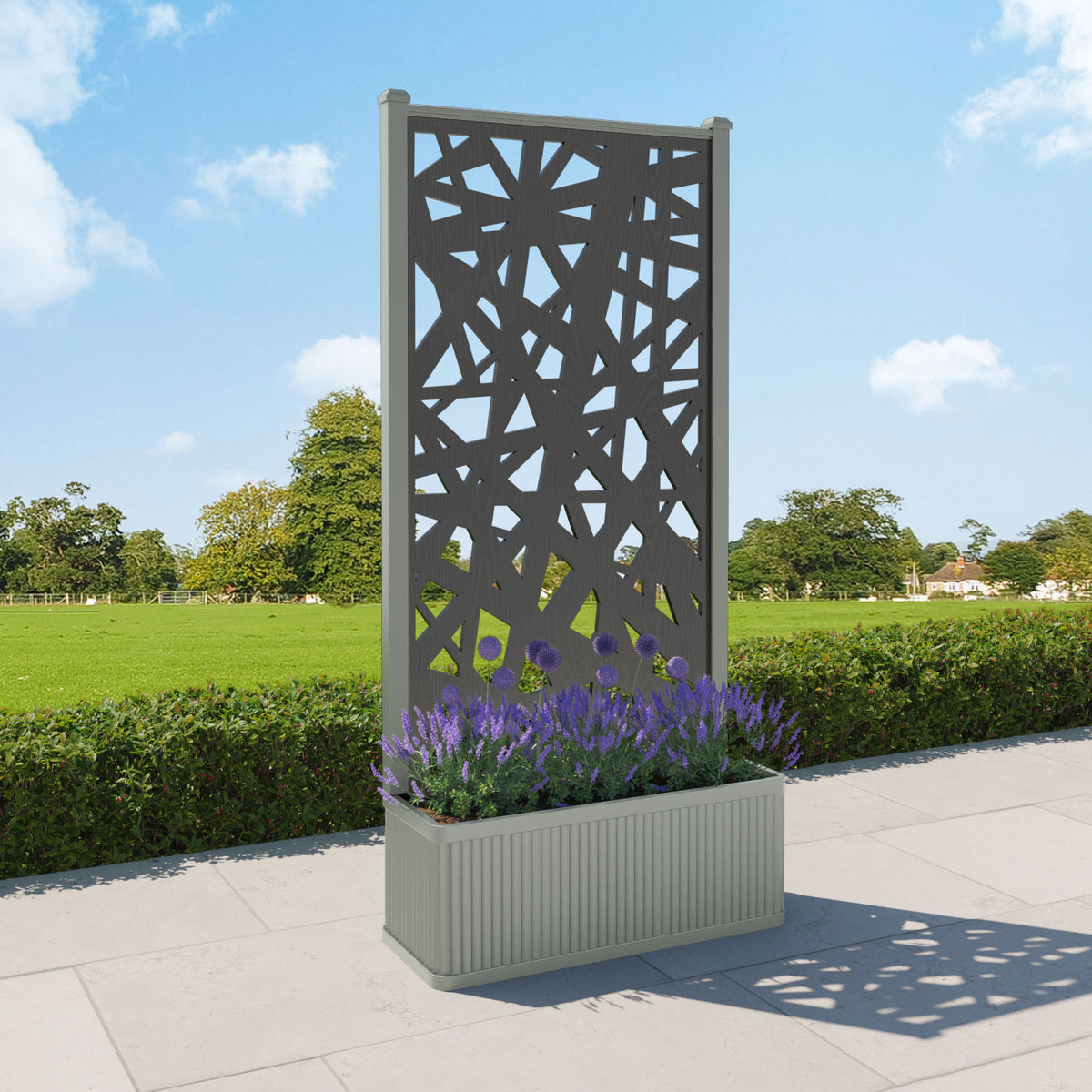 The planters are available in 6 different sizes and can be paired with any of our decorative screens that are available in 5 different colour options. The screens can be fixed at the back or in the centre of the planter. The centre option enables you to plant on both sides of the screen. They can also be ordered with a wheeled base for convenience, with lockable wheels for stability.