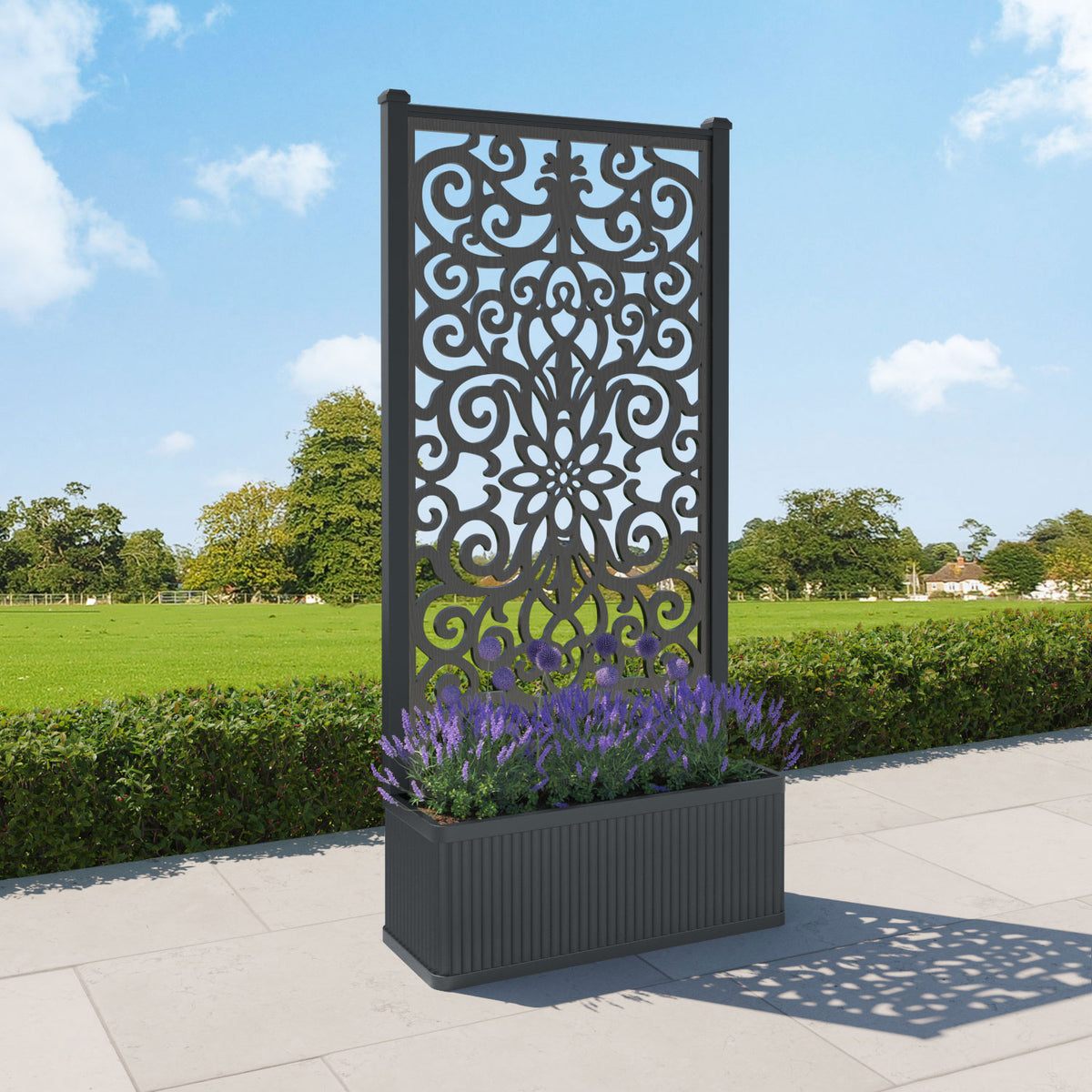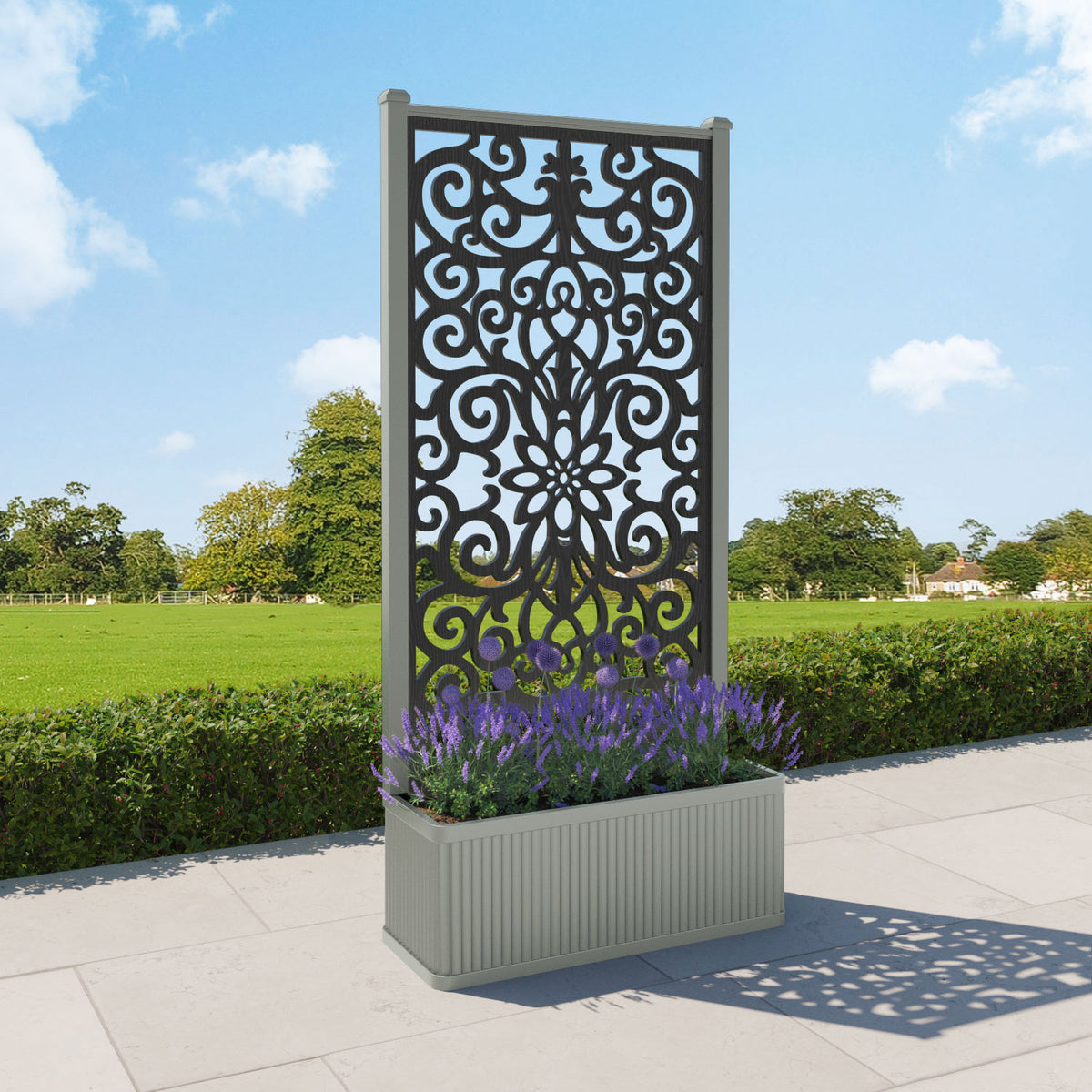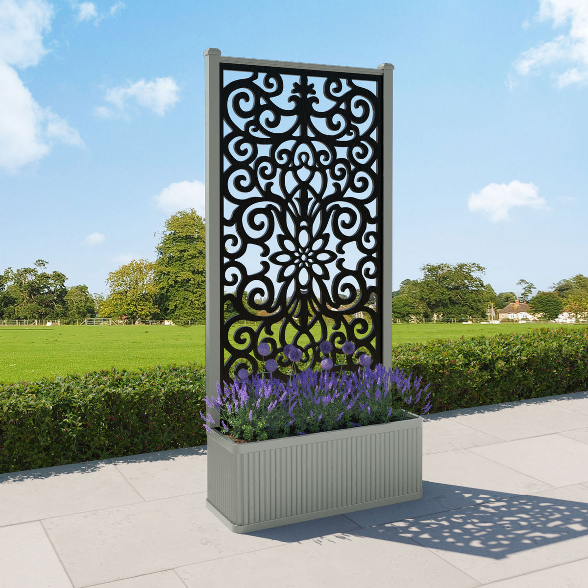 The planters are available in 6 different sizes and can be paired with any of our decorative screens that are available in 5 different colour options. The screens can be fixed at the back or in the centre of the planter. The centre option enables you to plant on both sides of the screen. They can also be ordered with a wheeled base for convenience, with lockable wheels for stability.