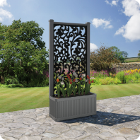 The planters are available in 6 different sizes and can be paired with any of our decorative screens that are available in 5 different colour options. The screens can be fixed at the back or in the centre of the planter. The centre option enables you to plant on both sides of the screen. They can also be ordered with a wheeled base for convenience, with lockable wheels for stability.