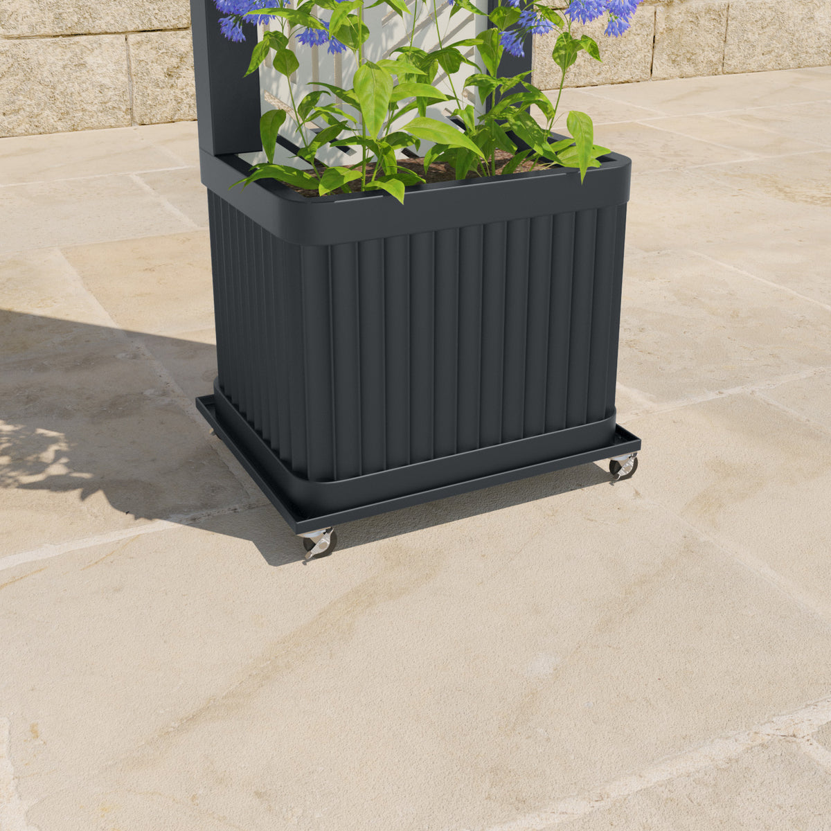 The planters are available in 6 different sizes and can be paired with any of our decorative screens that are available in 5 different colour options. The screens can be fixed at the back or in the centre of the planter. The centre option enables you to plant on both sides of the screen. They can also be ordered with a wheeled base for convenience, with lockable wheels for stability.