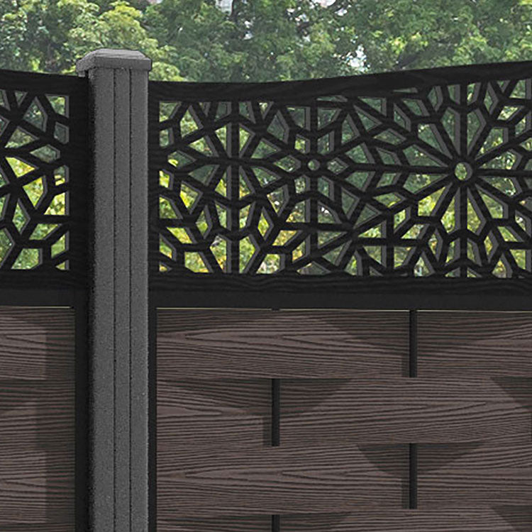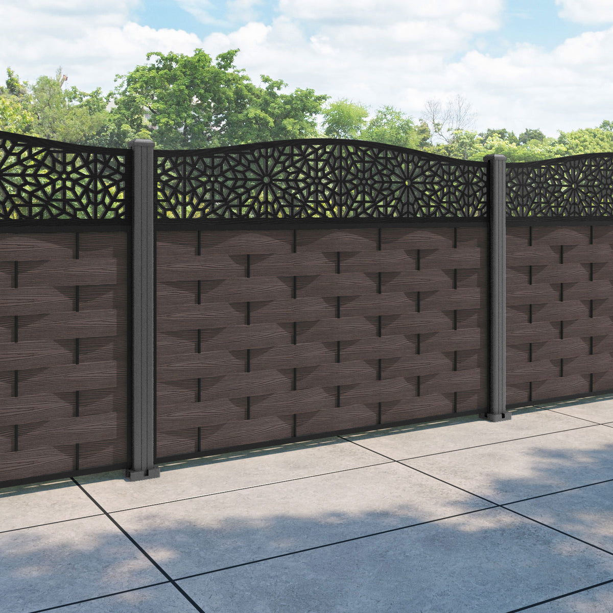 Ripple Alnara Curved Top Fence Panel Mid Brown - with our aluminium posts