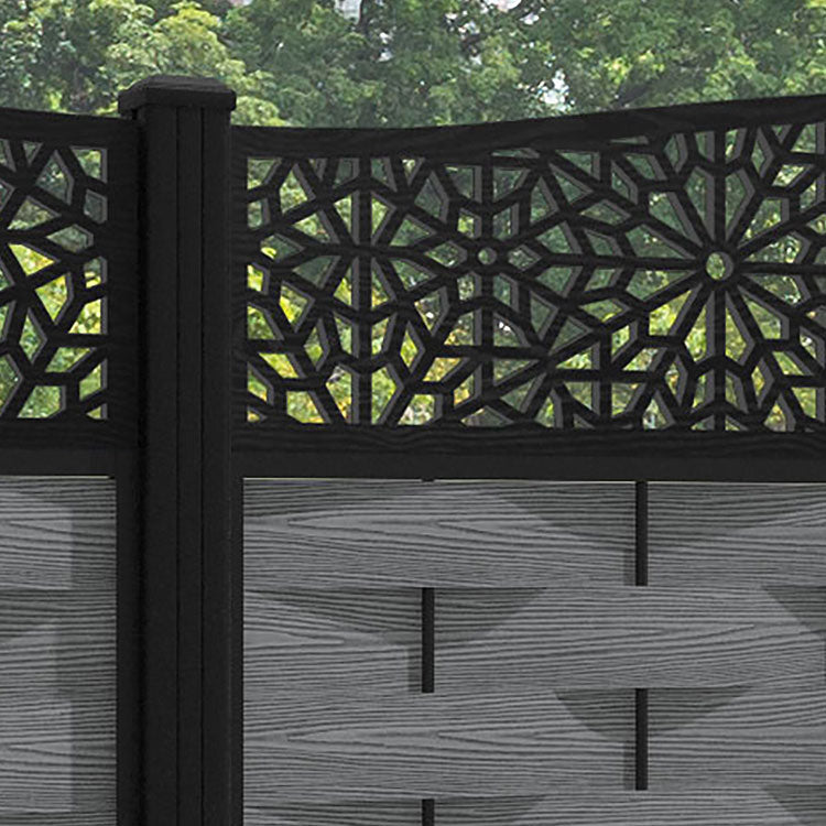 Ripple Alnara Curved Top Fence Panel Mid Grey - with our aluminium posts