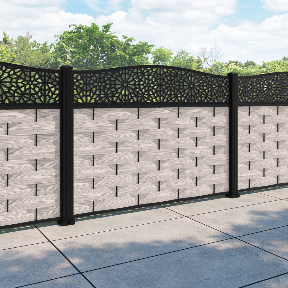 Ripple Alnara Curved Top Fence Panel Mid Stone - with our aluminium posts