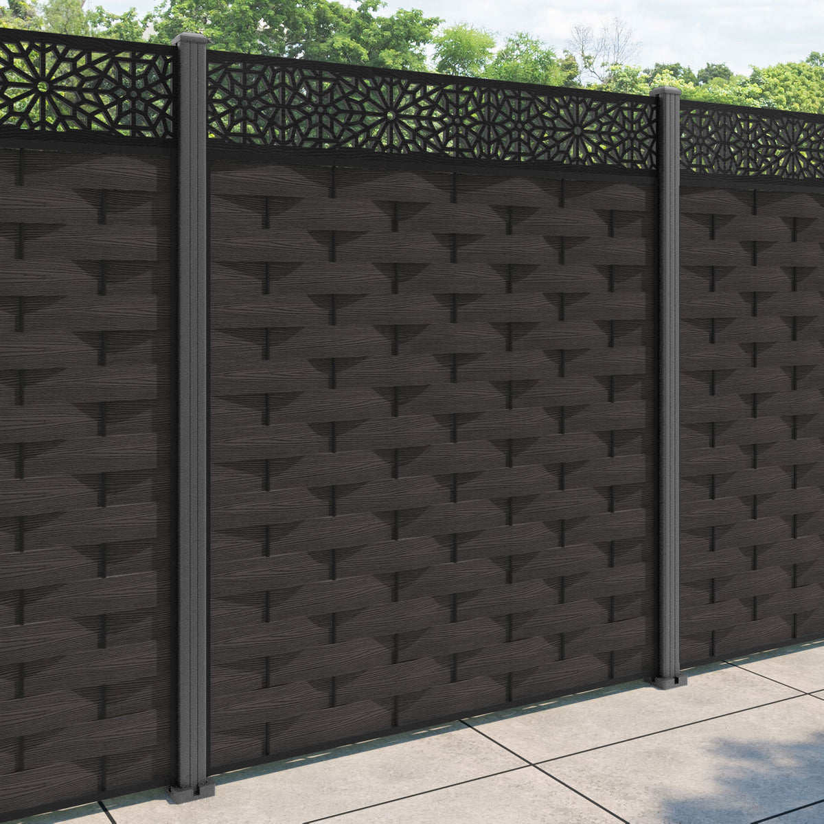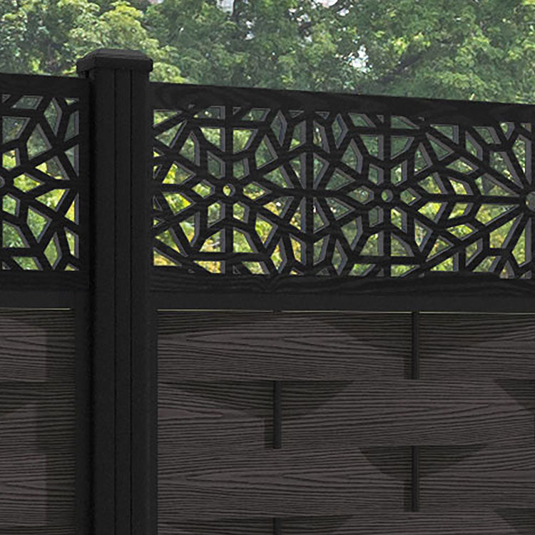Ripple Alnara Fence Panel Dark Oak - with our aluminium posts