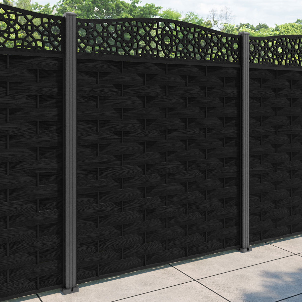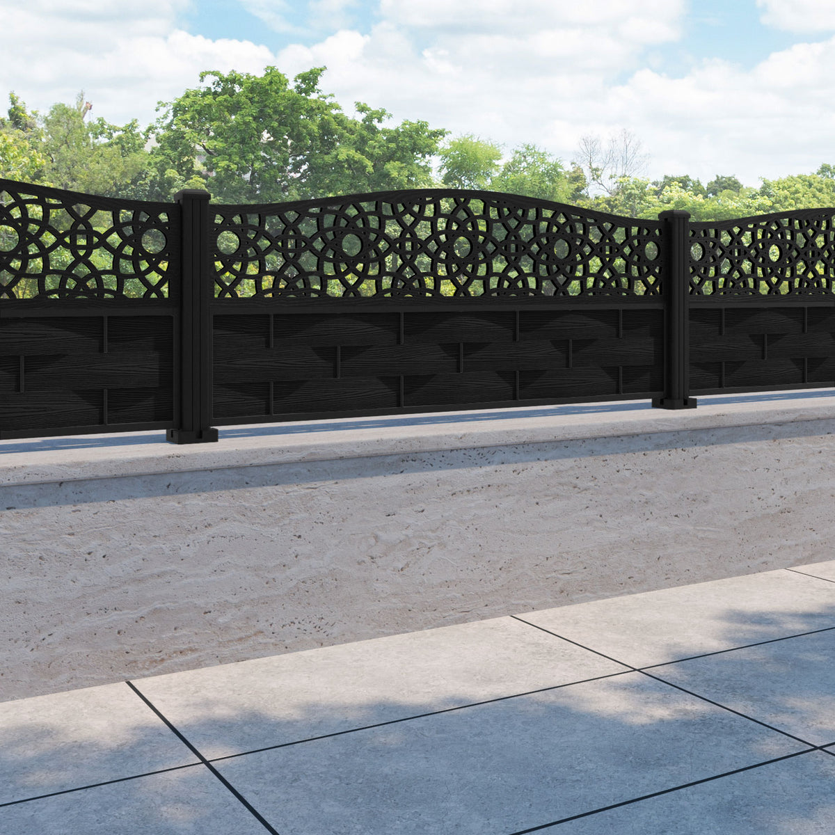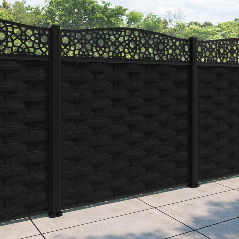 Ripple Ambar Curved Top Fence Panel Black - with our aluminium posts