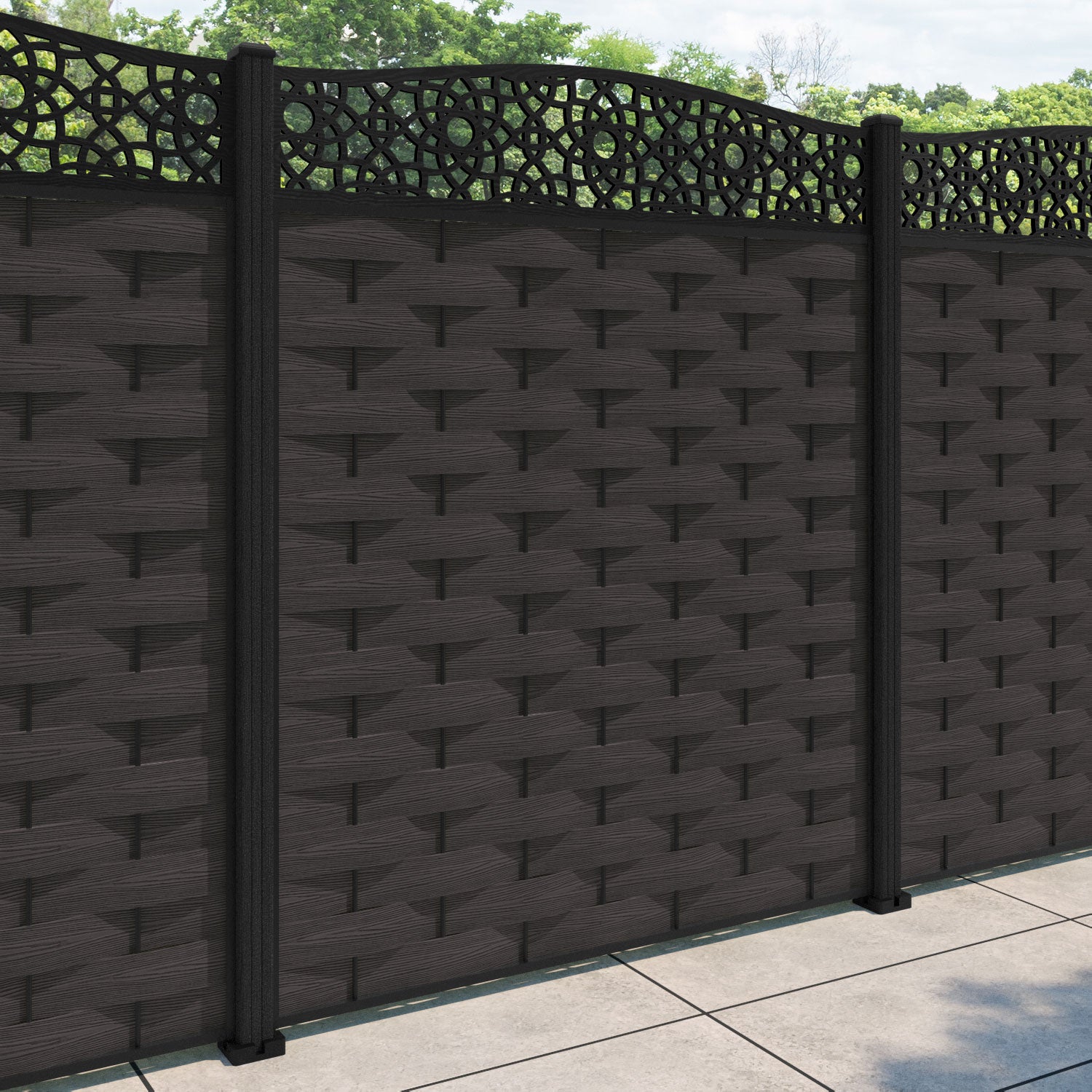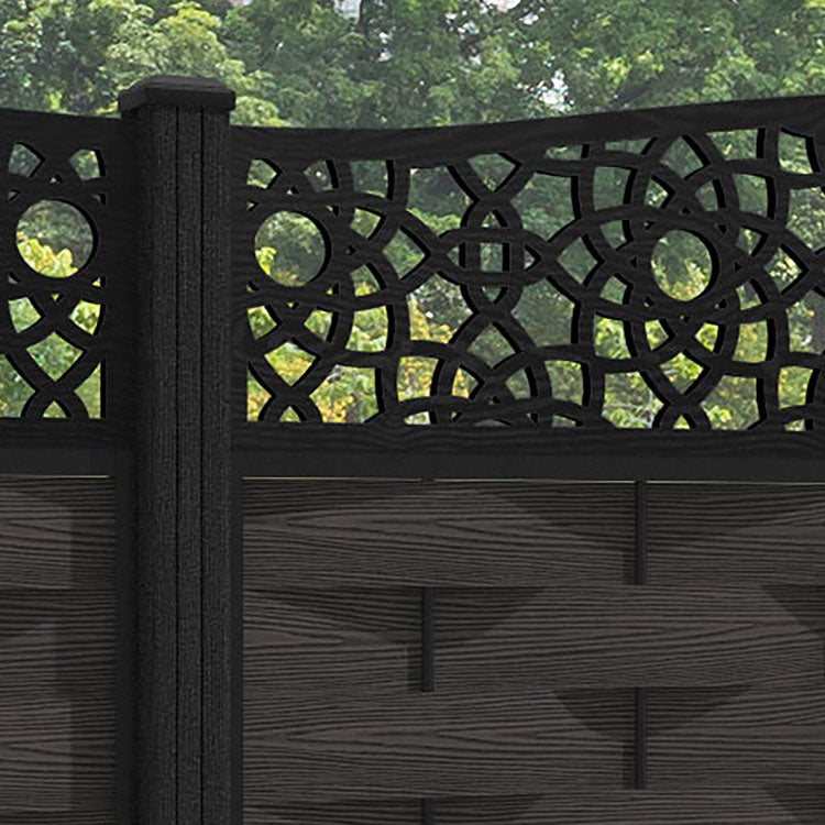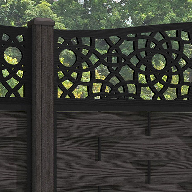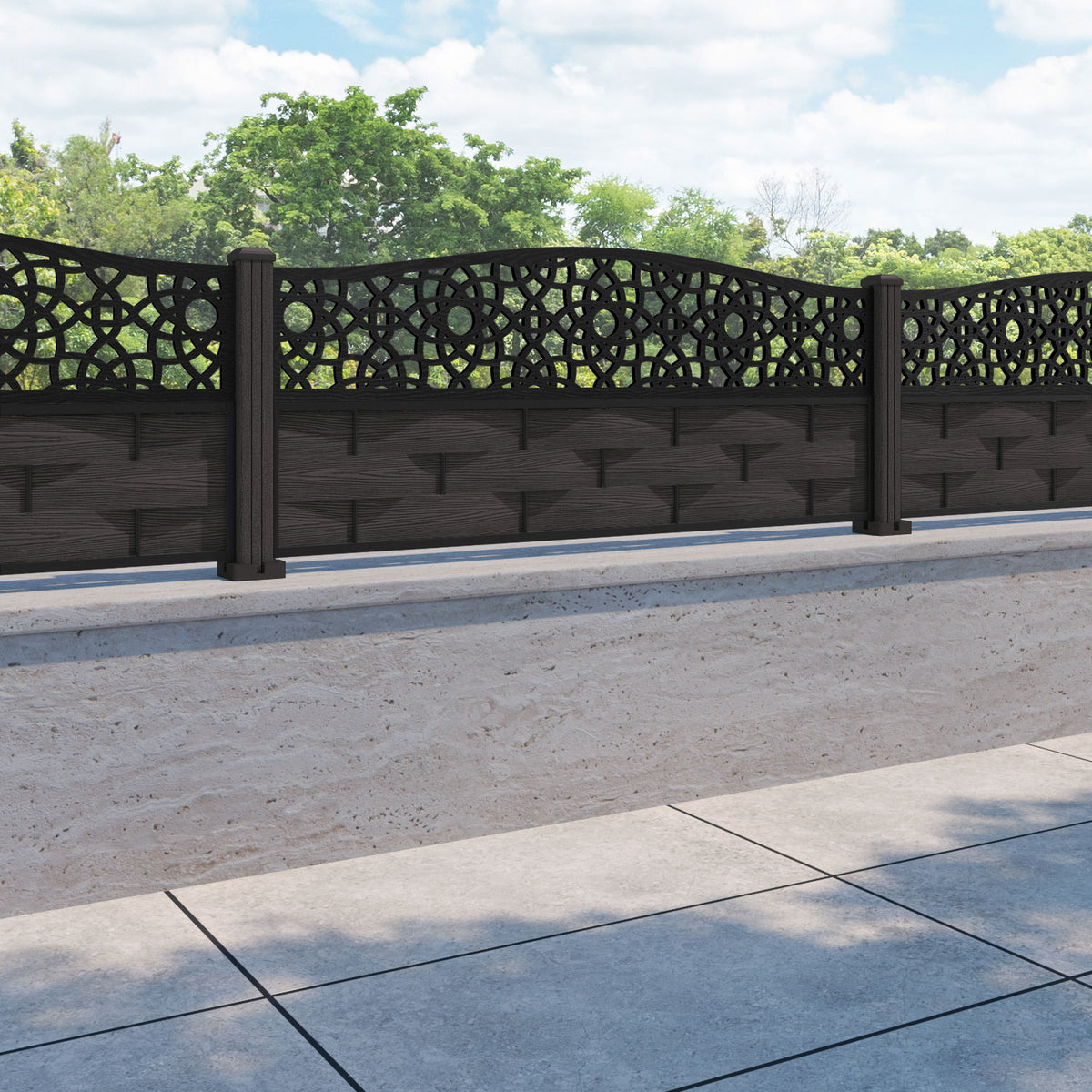 Ripple Ambar Curved Top Fence Panel Dark Oak - with our composite posts