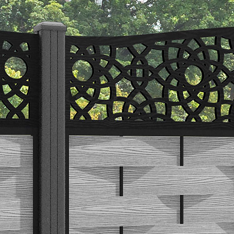 Ripple Ambar Curved Top Fence Panel Light Grey - with our aluminium posts