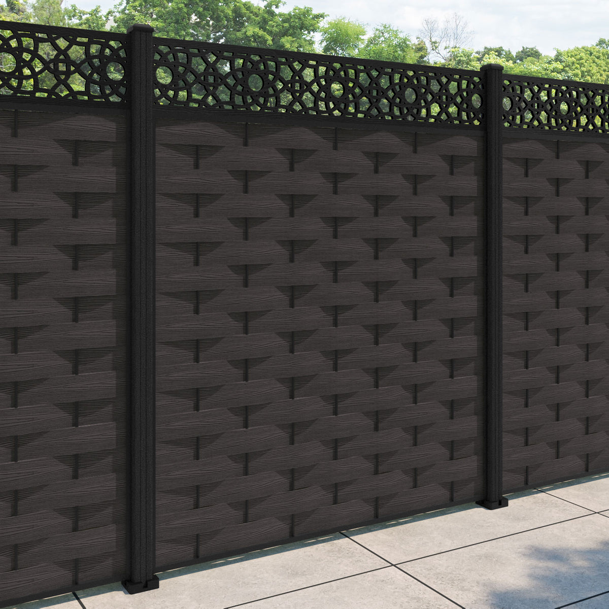 Ripple Ambar Fence Panel Dark Oak - with our composite posts