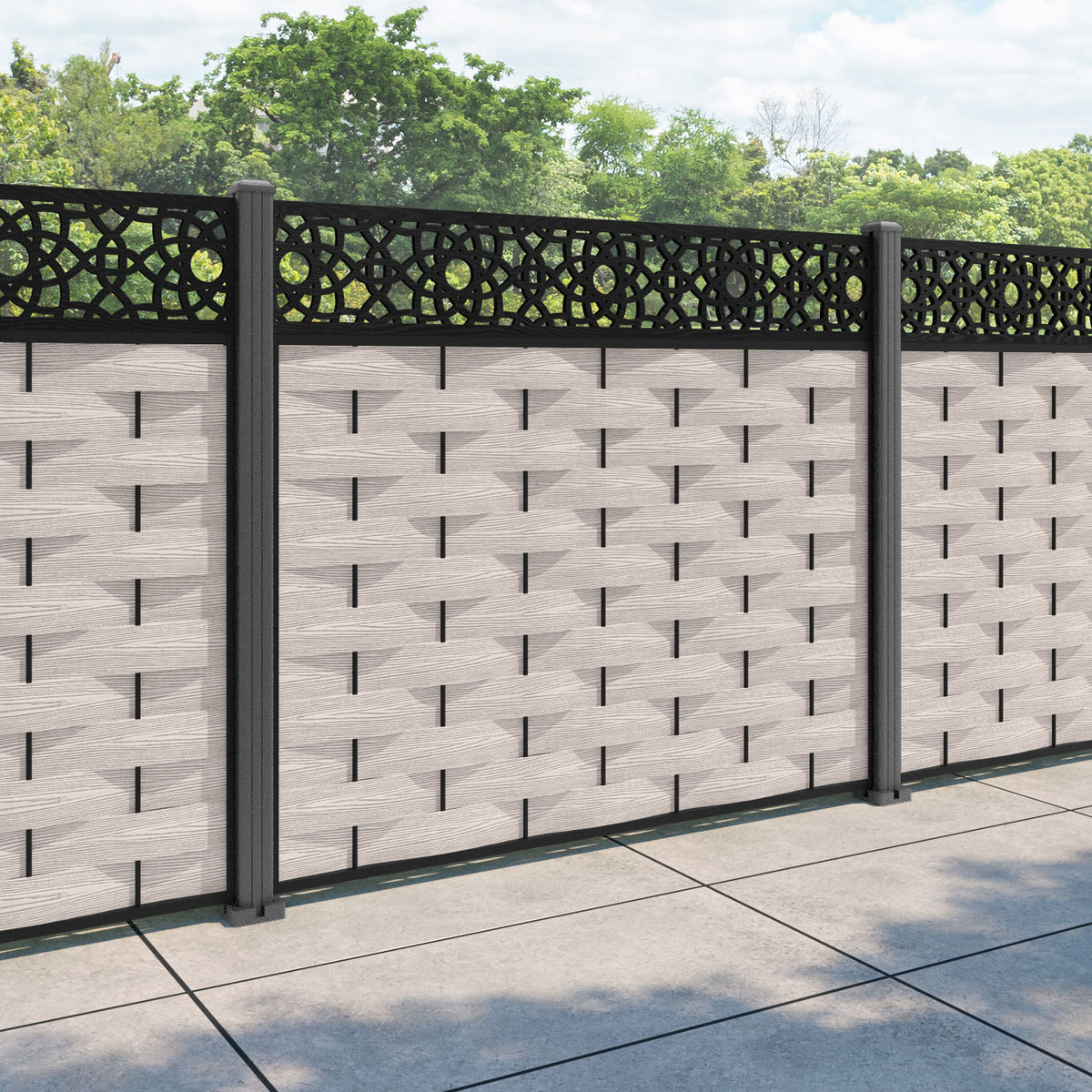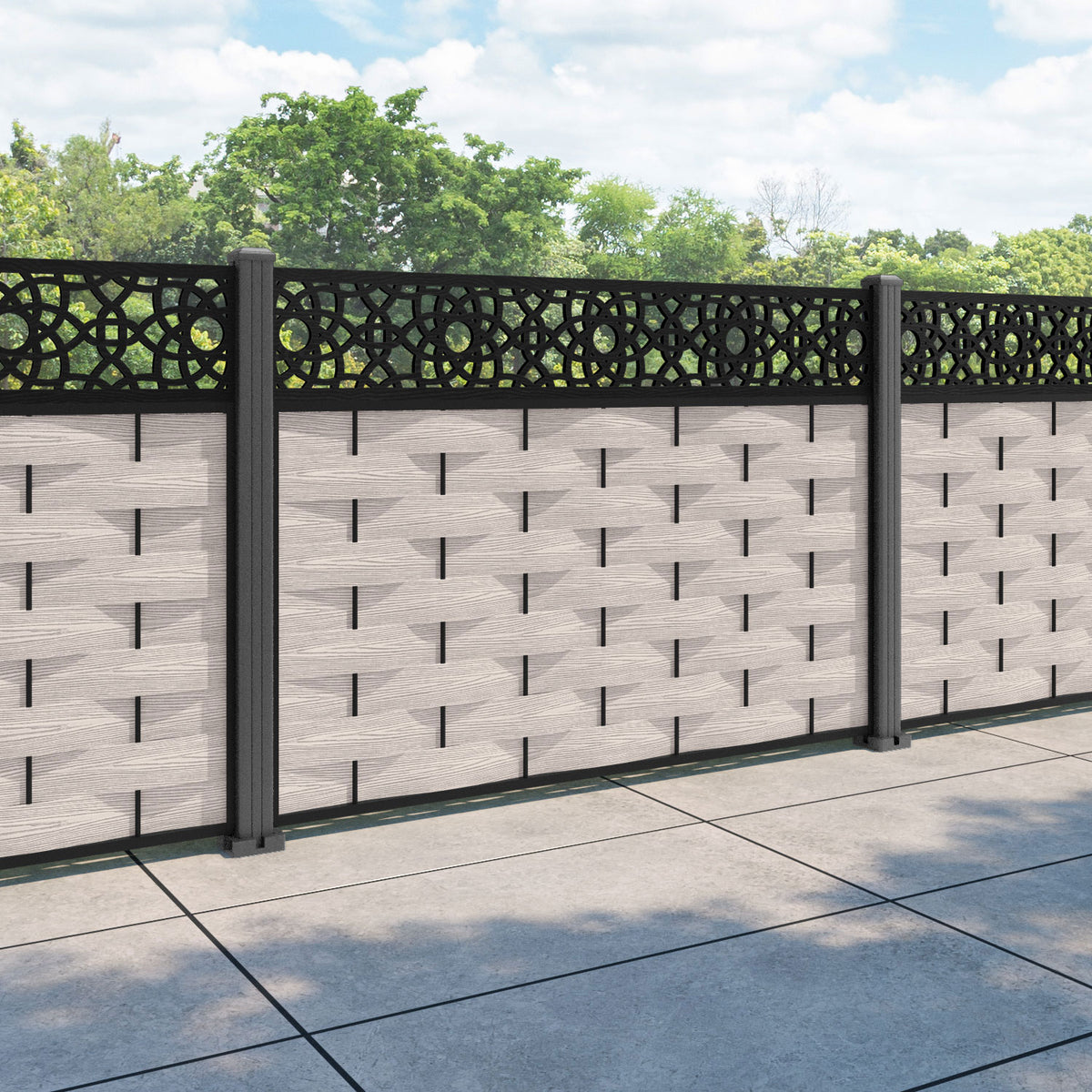 Ripple Ambar Fence Panel Mid Stone - with our aluminium posts