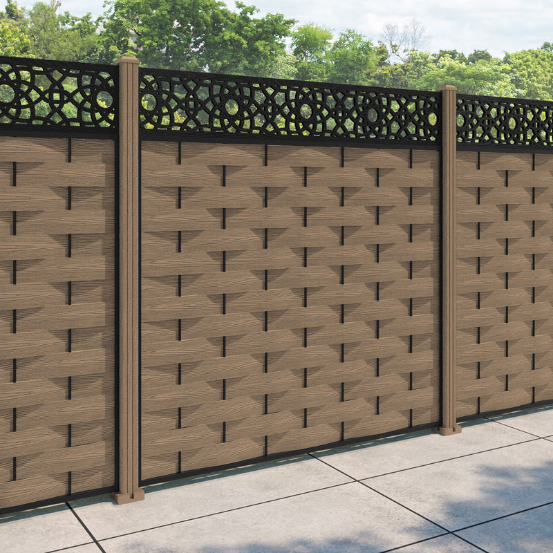 Ripple Ambar Fence Panel Teak - with our composite posts