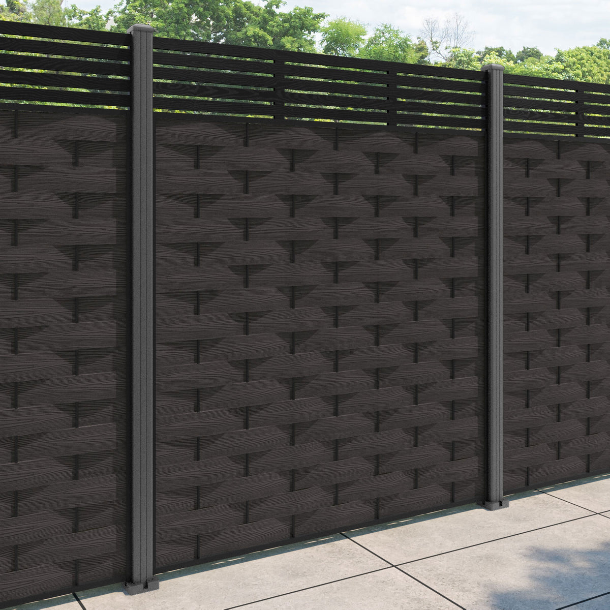 Ripple Aspen Fence Panel Dark Oak - with our aluminium posts
