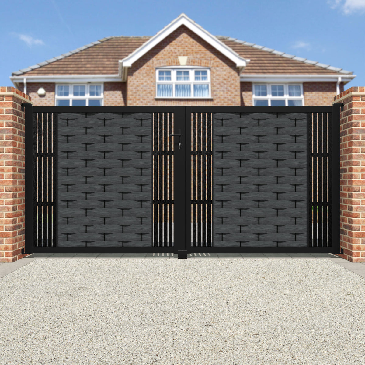 Pair your gate with our eco-friendly composite or aluminium slats for a seamless match with our fencing collections, ensuring a stylish and cohesive look.