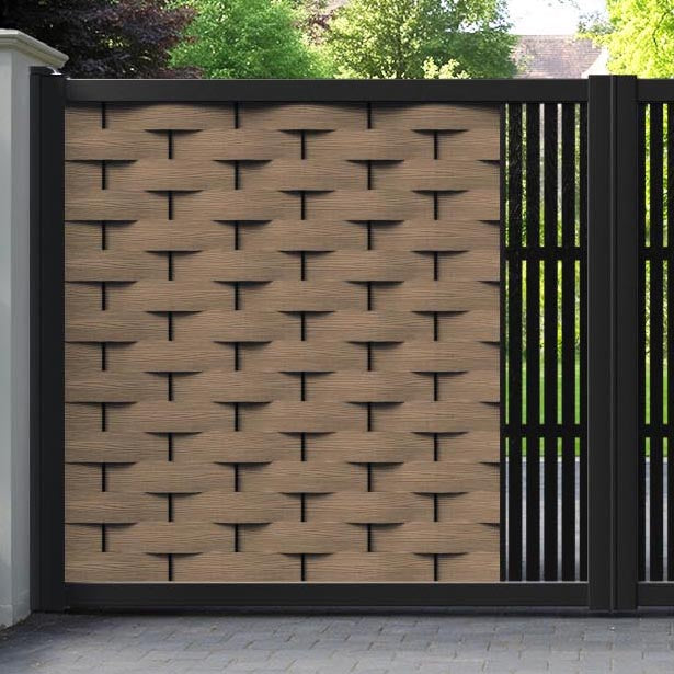 Ripple Aspen Straight Top Driveway Gate Teak - Middle Screen