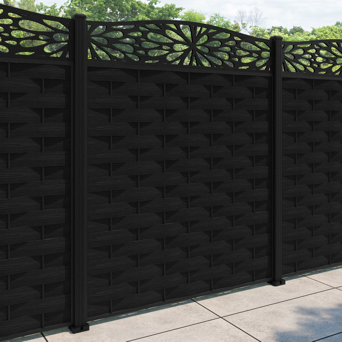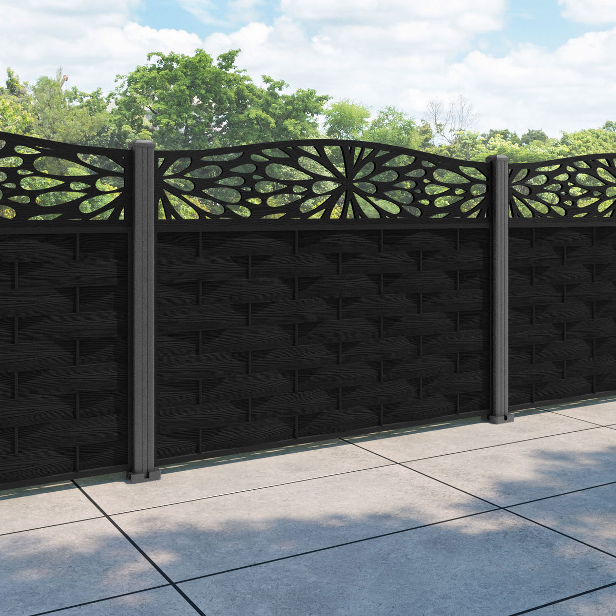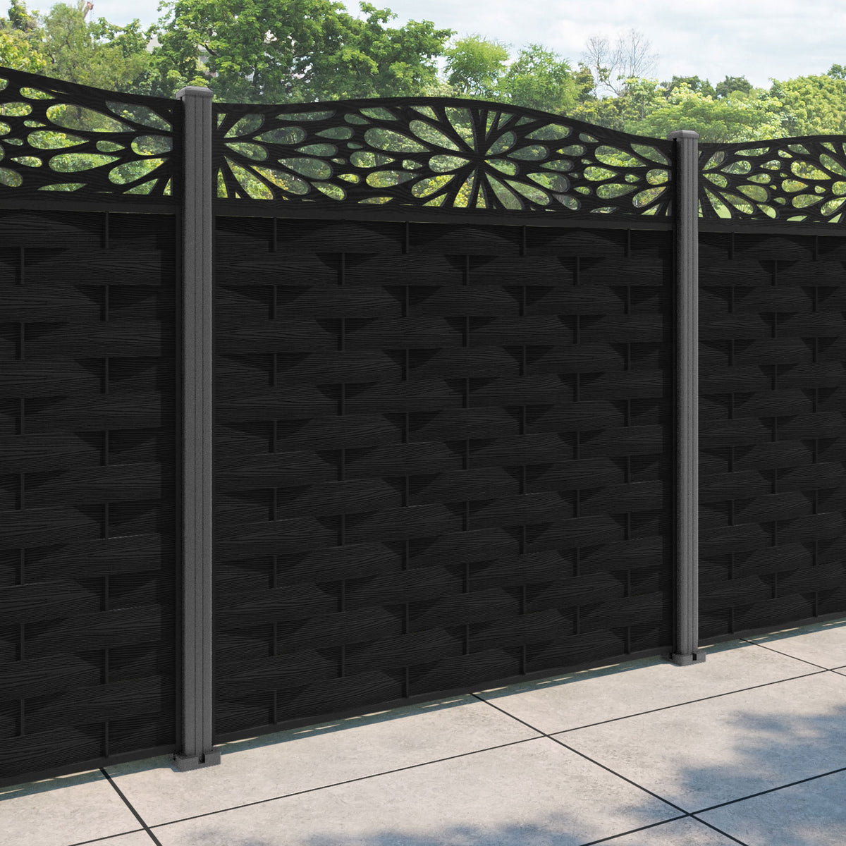 Ripple Blossom Curved Top Fence Panel Black - with our aluminium posts