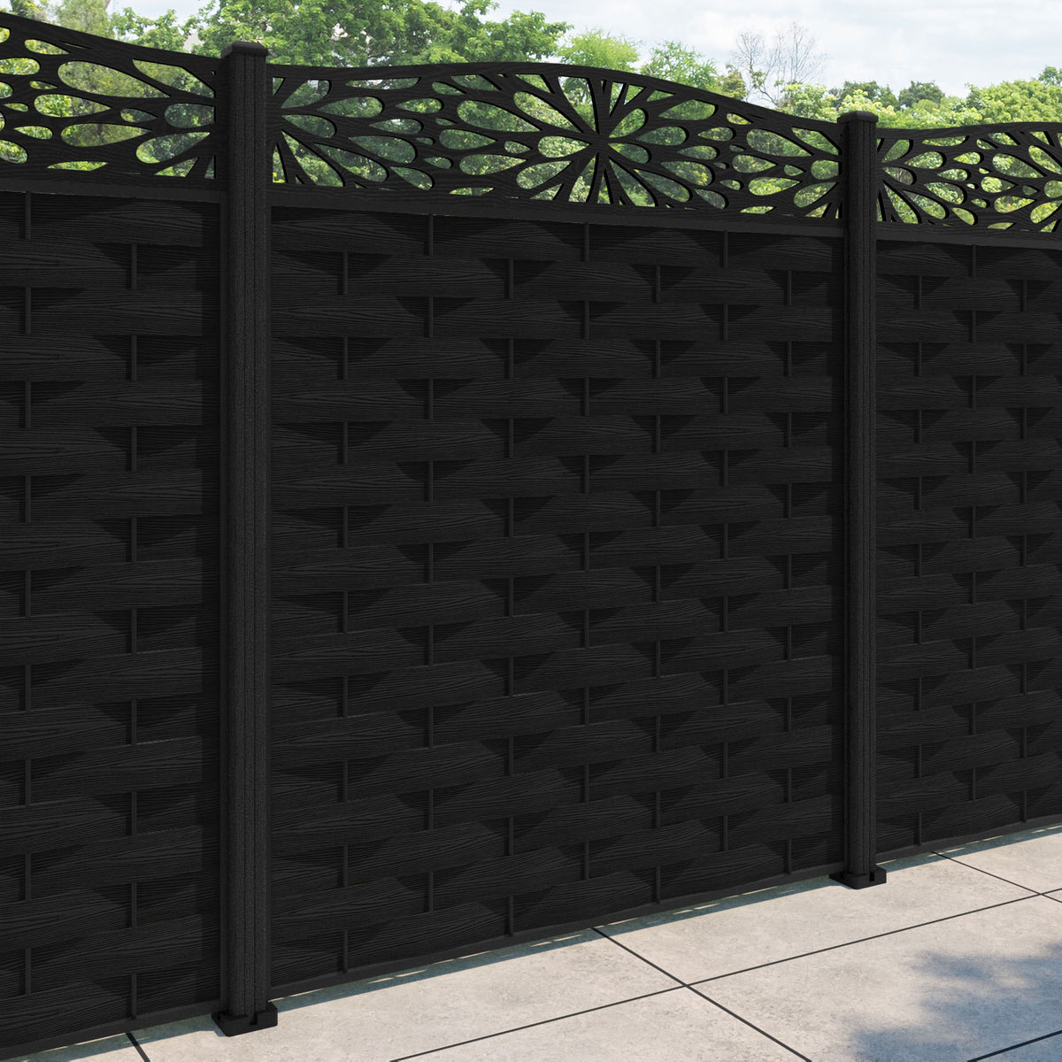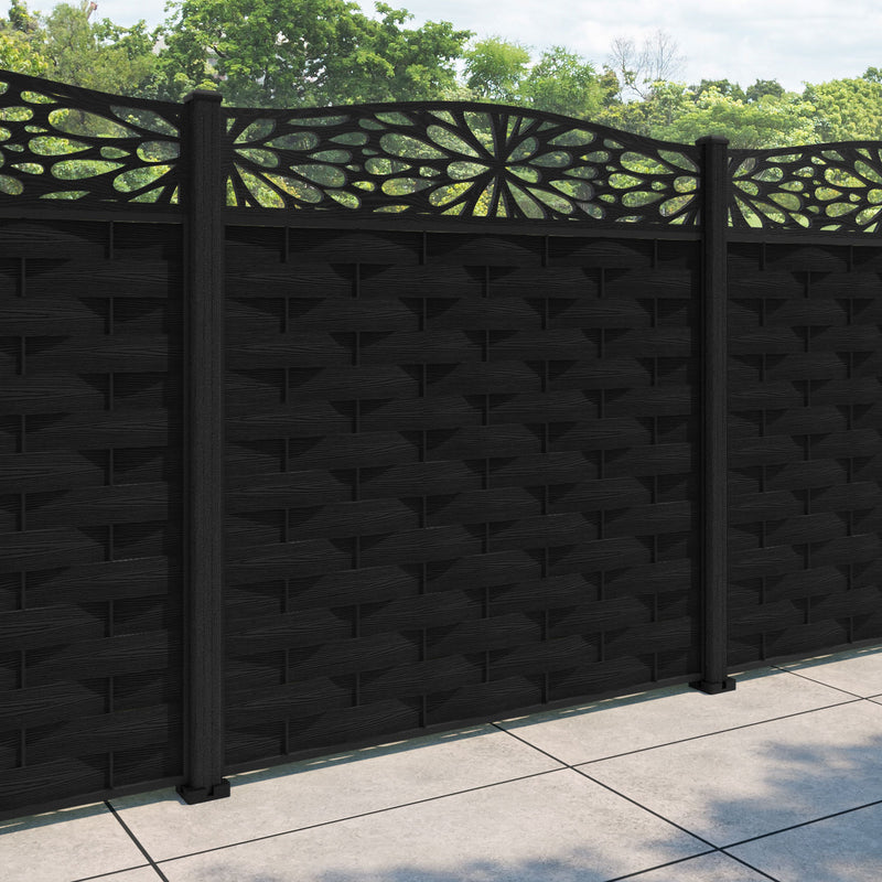 Ripple Blossom Curved Top Fence Panel Black - with our composite posts