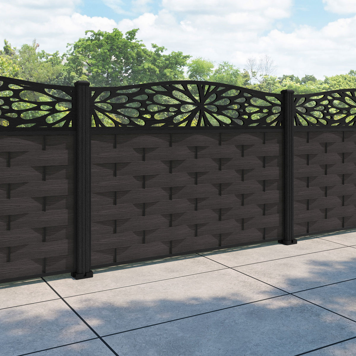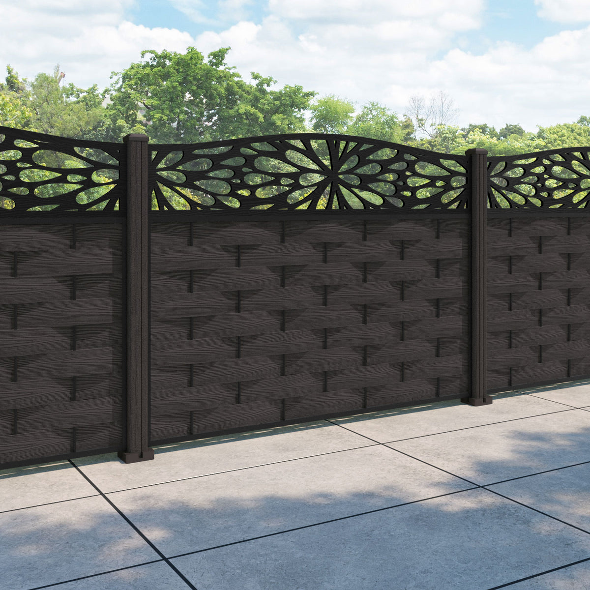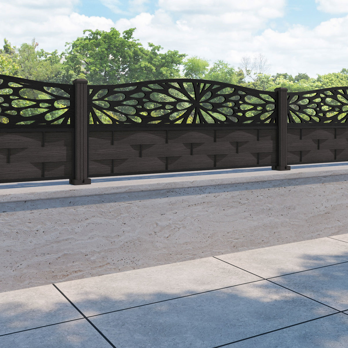 Ripple Blossom Curved Top Fence Panel Dark Oak - with our composite posts