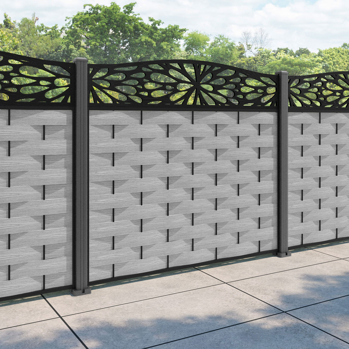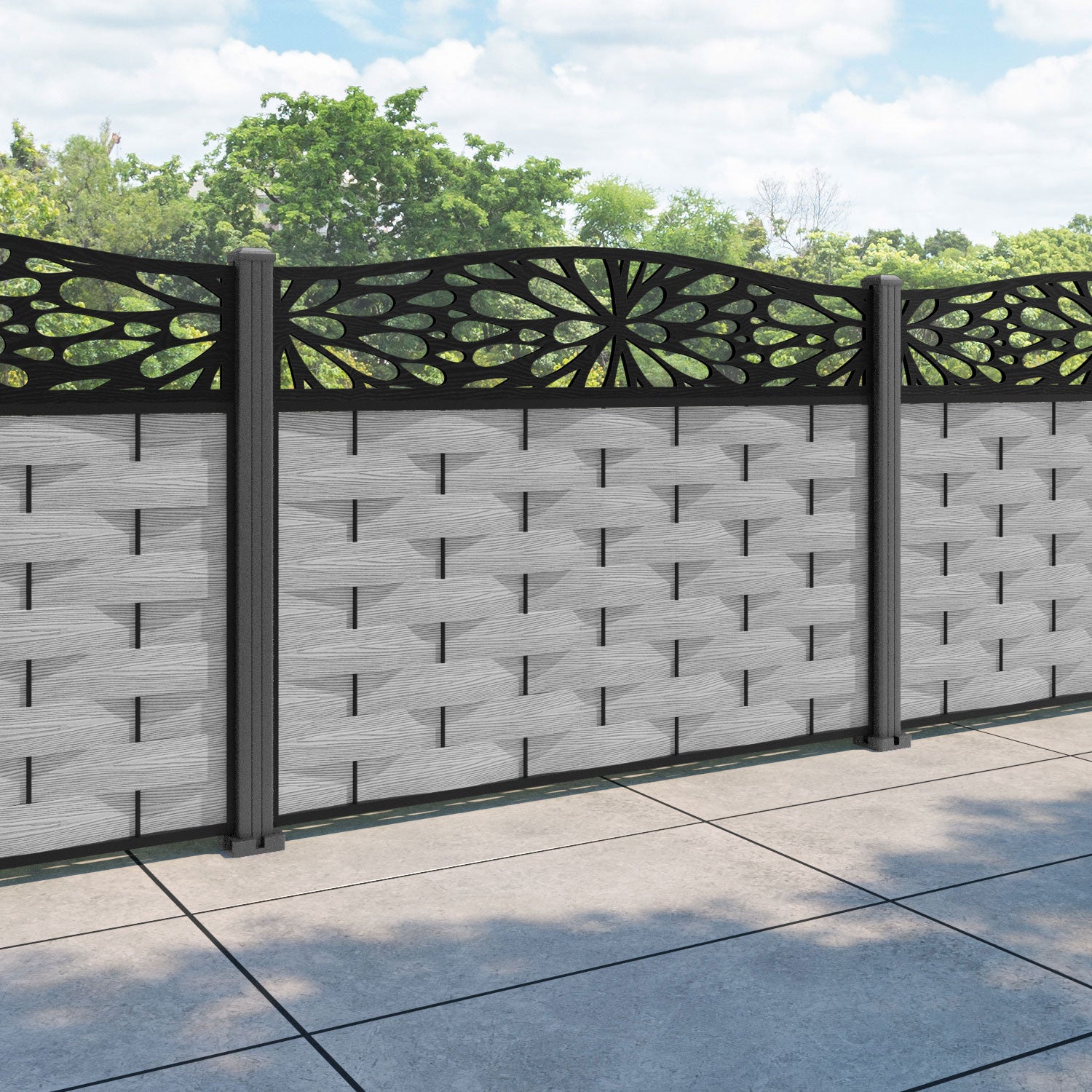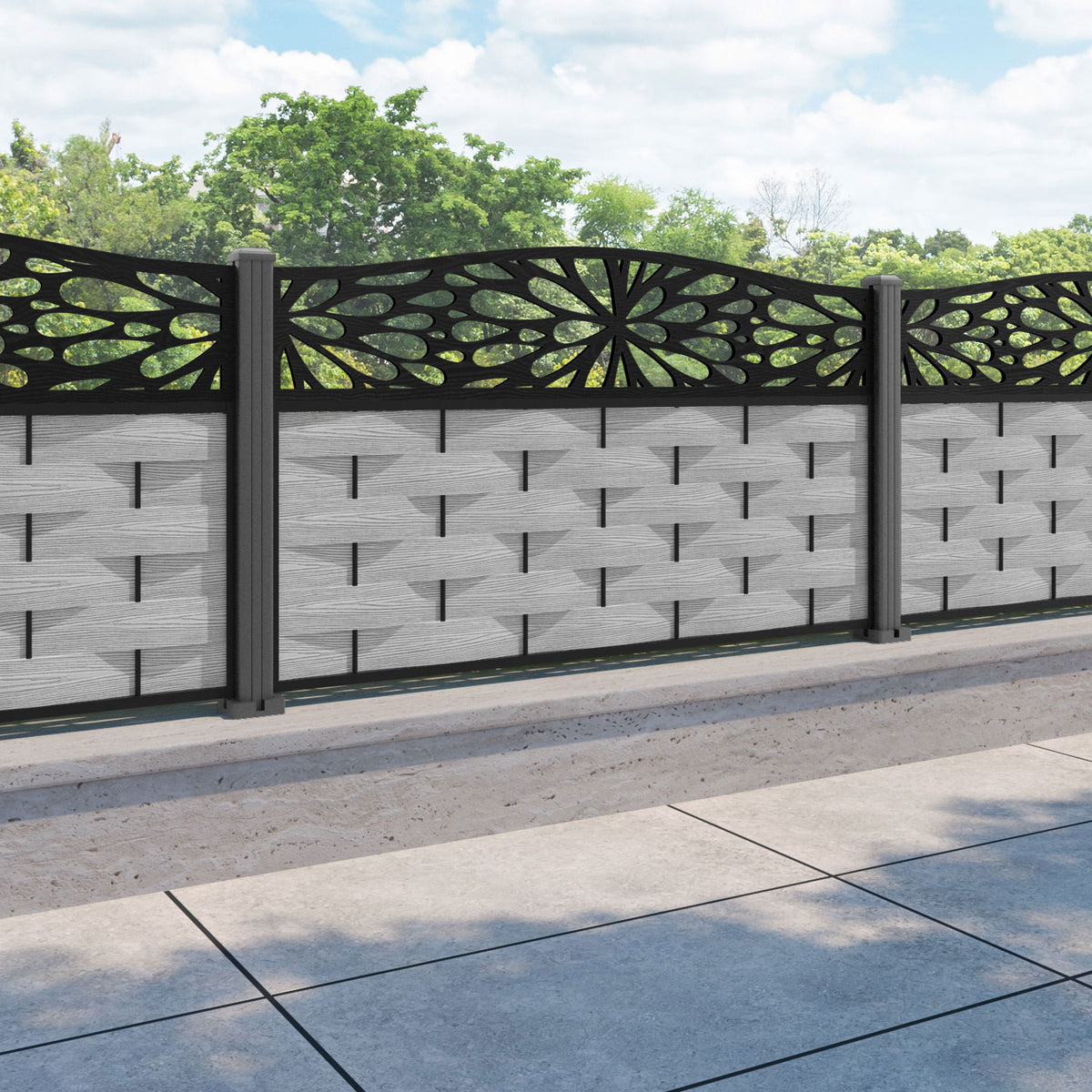 Ripple Blossom Curved Top Fence Panel Light Grey - with our aluminium posts