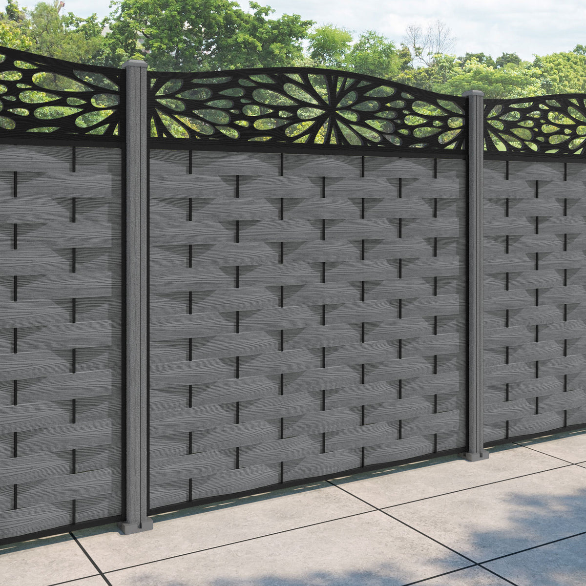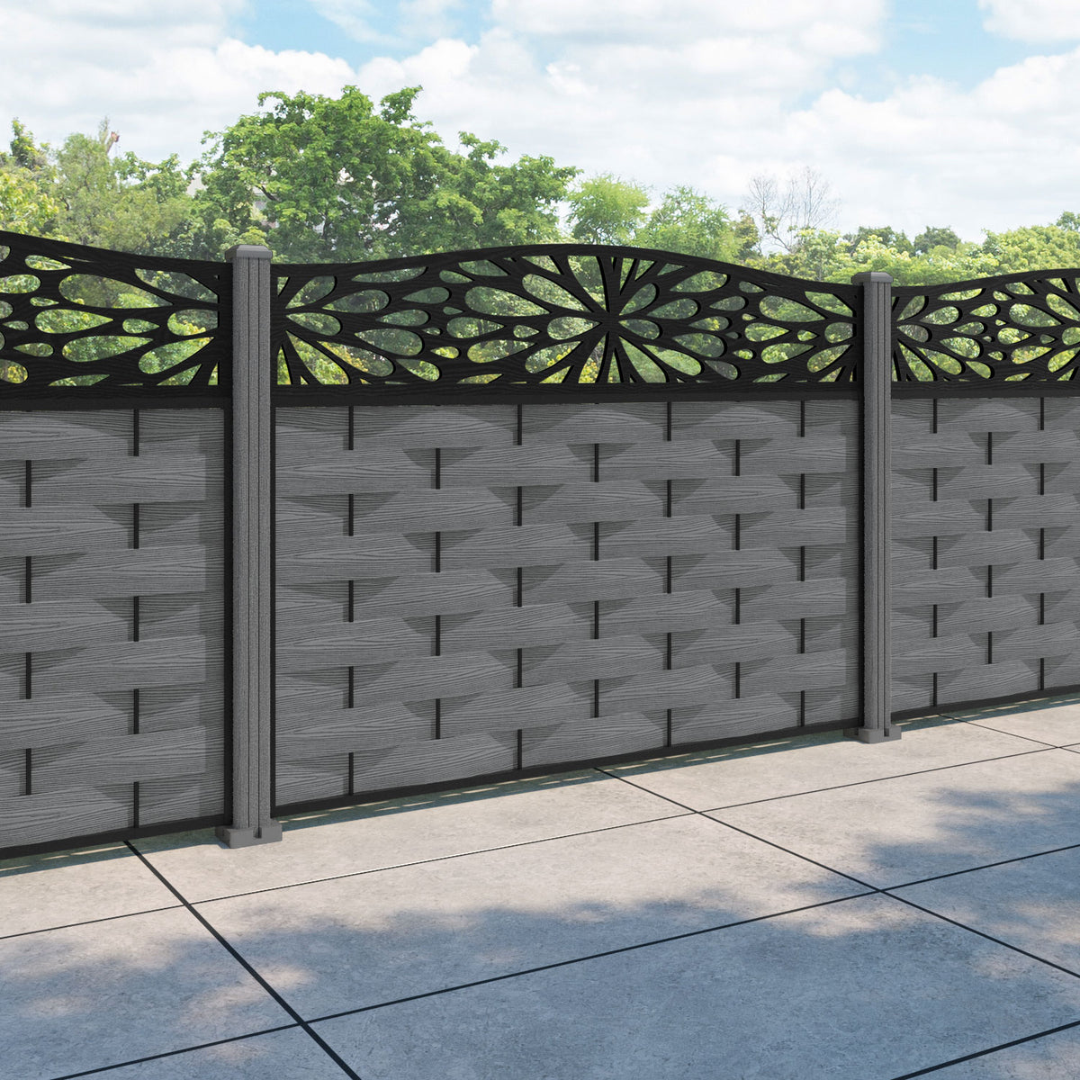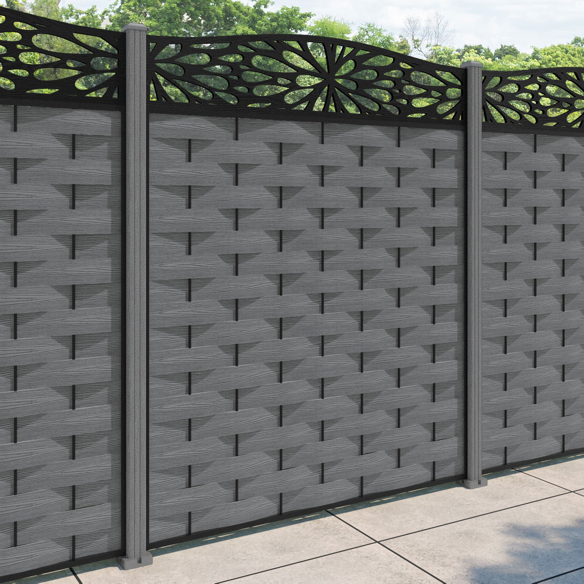Ripple Blossom Curved Top Fence Panel Mid Grey - with our composite posts
