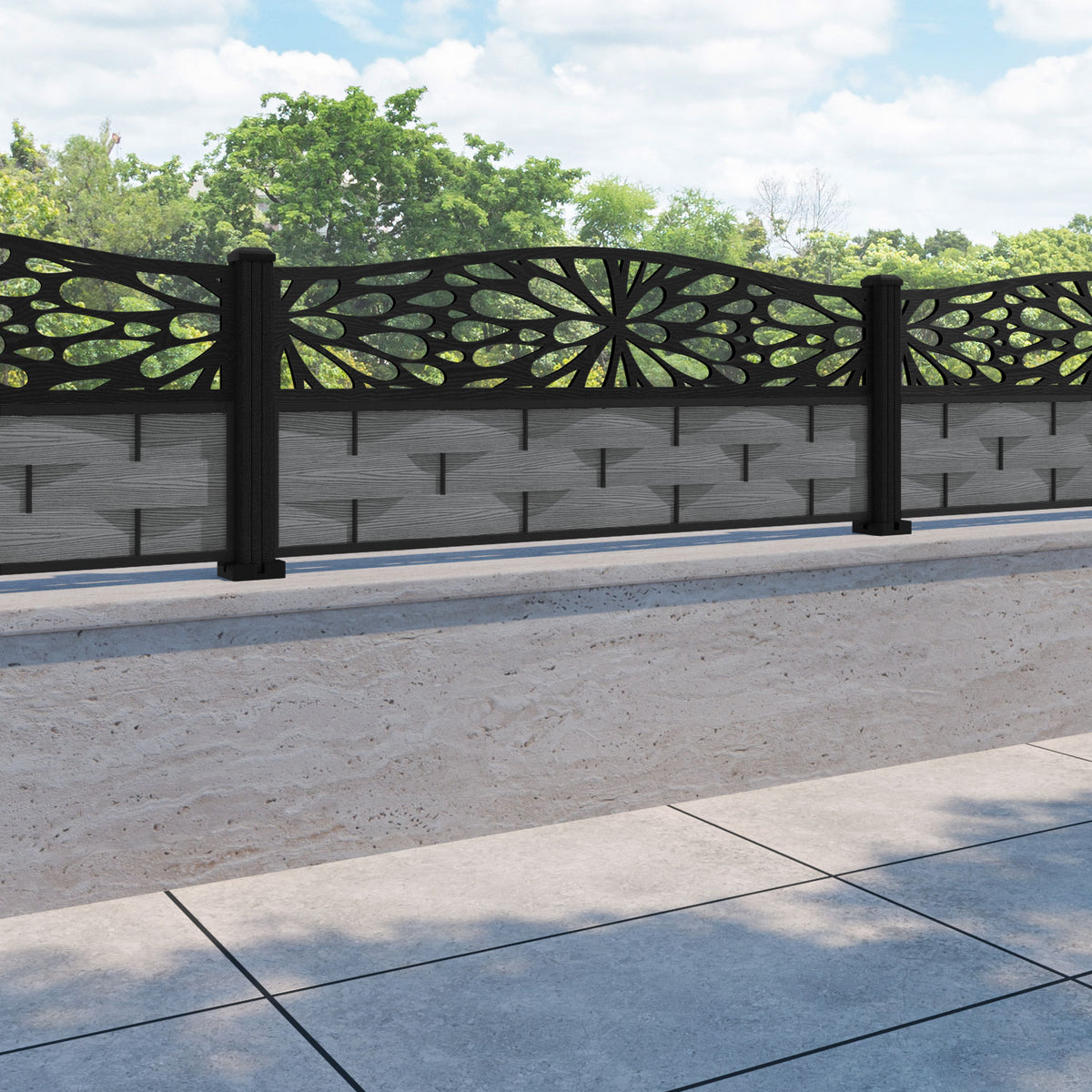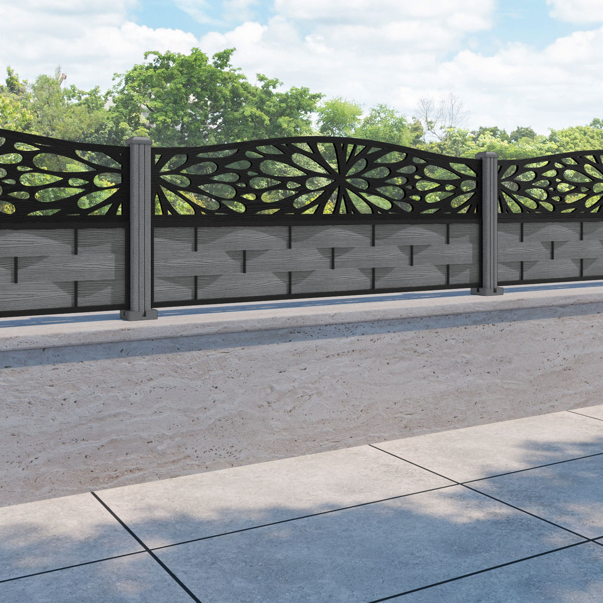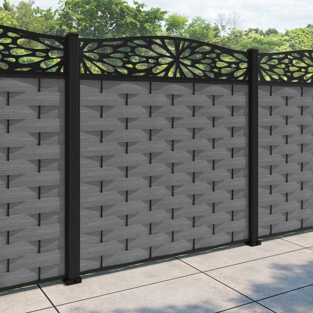 Ripple Blossom Curved Top Fence Panel Mid Grey - with our composite posts