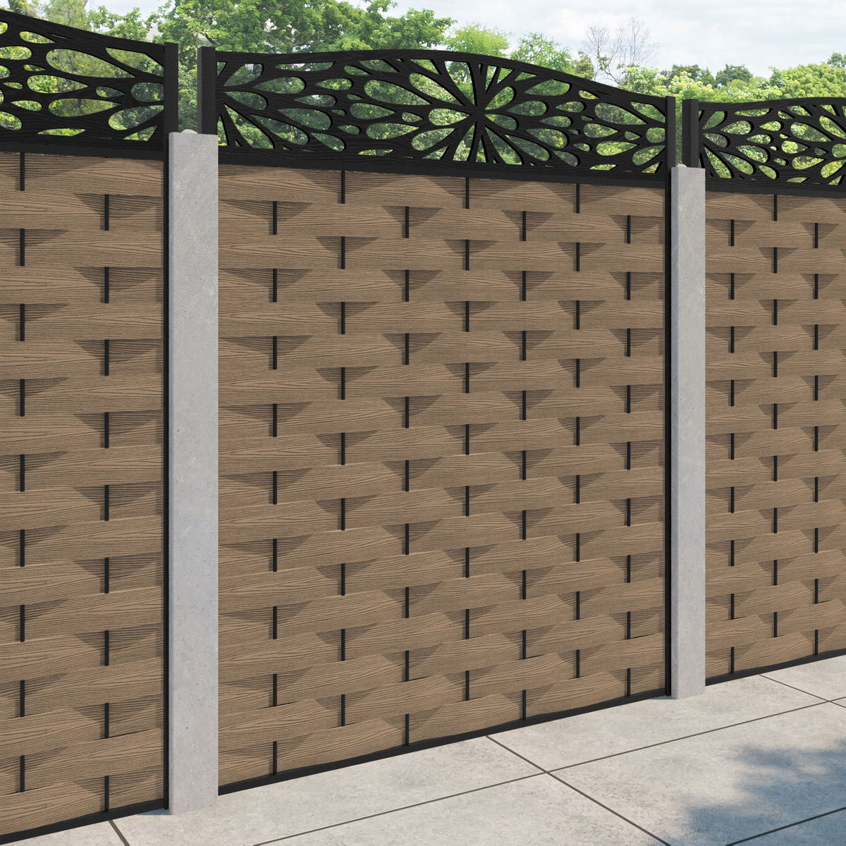Ripple Blossom Curved Top Fence Panel Teak - for existing concrete posts