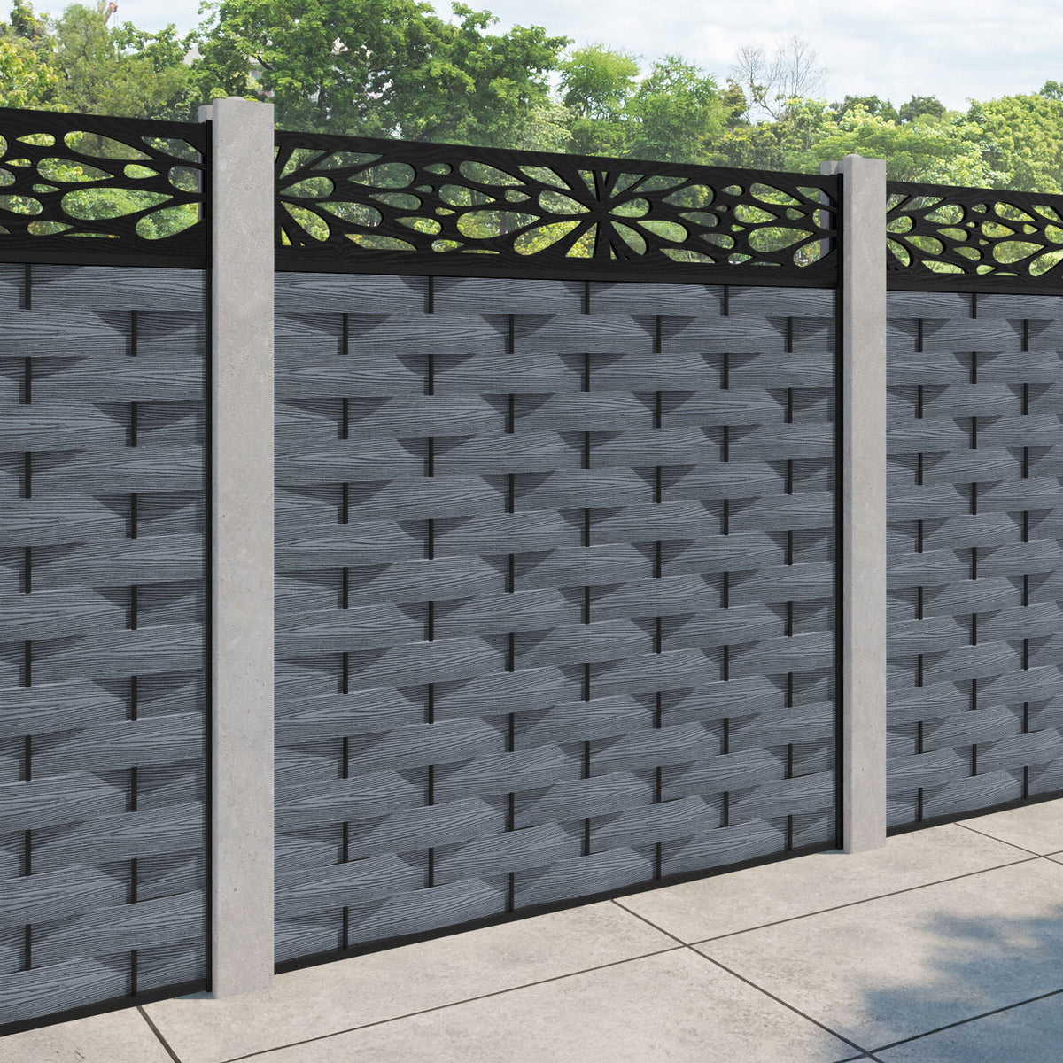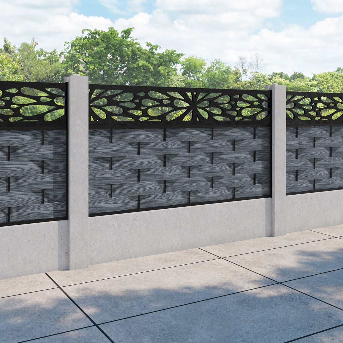 Ripple Blossom Fence Panel Anthracite - for existing concrete posts